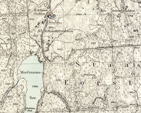 Der von Wald umgebene Marinowo-See bei Klein Schwentischken (Kleinschanzenort) hatte schon zu Zeiten der Monarchie eine gewisse Berühmtheit erlangt, weil die Kaisergattin am Ufer ein Teehaus hatte bauen lassen. Das Kurhaus Marinowo erbaute der Fischer Liebe mit Hilfe einer "Stellmacherei" in Groß Schwentischken, später Schanzenort und (heute Pugacevo). Dadurch lernte Liebe die Tochter des Stellmachers kennen und heiratete sie.