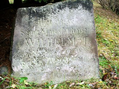 „Hier erlegte Seine Majestät Kaiser Wilhelm II am 30 September 1909 auf von Abendpursche einen KapitalHirsch von 22 Enden.“