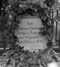 Es wurde eine "Anna-Katharina-Emmerick-Gedächtnisstätte" im ehem. Augustinerkloster an der Pfarrkirche Maria-Königin in Trägerschaft der Pfarrgemeinde Dülmen Maria-Königin eingerichtet. Kontakt: Vorsitzende(r) Heinz Wansing, Anna Katharina Emmerick Straße 28-30, 48249 Dülmen, Telefon: 02594 2126 o. 9510, Fax: 02594 7169. Führungen: auf Anfrage; pädagogische Betreuung von Schulklassen/Gruppen, Öffnungszeiten: nach Vereinbarung, Sonstiges: Buchhandlung vorhanden