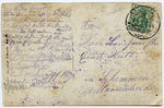 "An: Herrn Bruchmeister Ernst Hütt in Schemmen, bst Marienheide - Theile Dir eben (mit,) daß ich das Paket erhalten habe. Hier ist es augenblicklich sehr kalt. Bin Dienstag abend wieder da. Das andere alle mündlich. Besten Gruß Richard. Gruß an Euch alle. Grüßen Euch alle (?). Gruß Bauer T. Hassel (?) F. Kreuzer P. Partner Joh. Domitz (?) Pet. Ge(?) Schiefer Peter (?) Karl Weber Josef Koga / Riza (?) Martin Thönneßen W. Schneider Wieban / Wiebartz (?)" | |