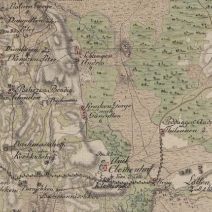 Siehe nördl. v. Clemenhof 'Gündullen' Schroetter Karte 1802, Maßstab 1: 160 000