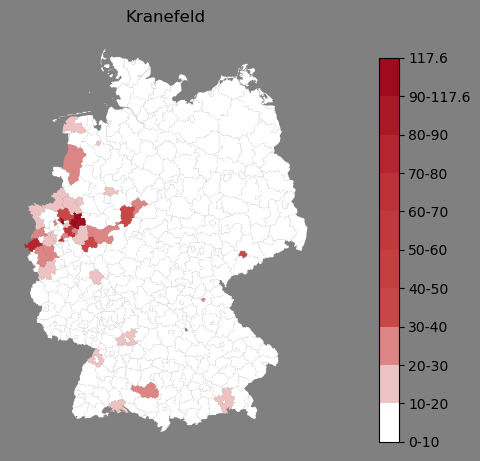 Absolute Verteilung des Namens Kranefeld (1890)Direkt zur Karte Absolute Verteilung des Namens "Kranefeld" um 1890 im damaligen Deutschen Reich Sie können die Karte innerhalb des Fensters zoomen und verschieben. |