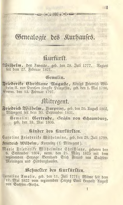 Friedrich Wilhelm, Kurprinz, geb. den 20. August 1802, Mitregent seit dem 30. September 1831.