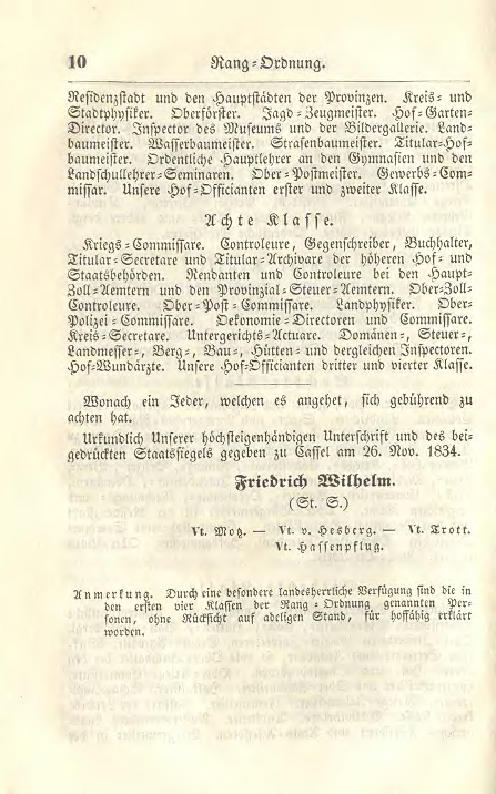Urkundlich Unserer höchsteigenhändigen Unterschrift und des beigedrückten Staatssiegels gegeben zu Cassel am 26. Nov. 1834.