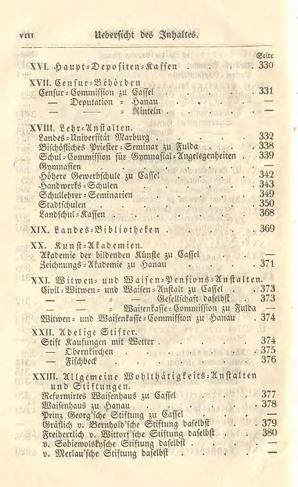| Civil-, Witwen- und Waisen-Anstalten zu Cassel | 373 |