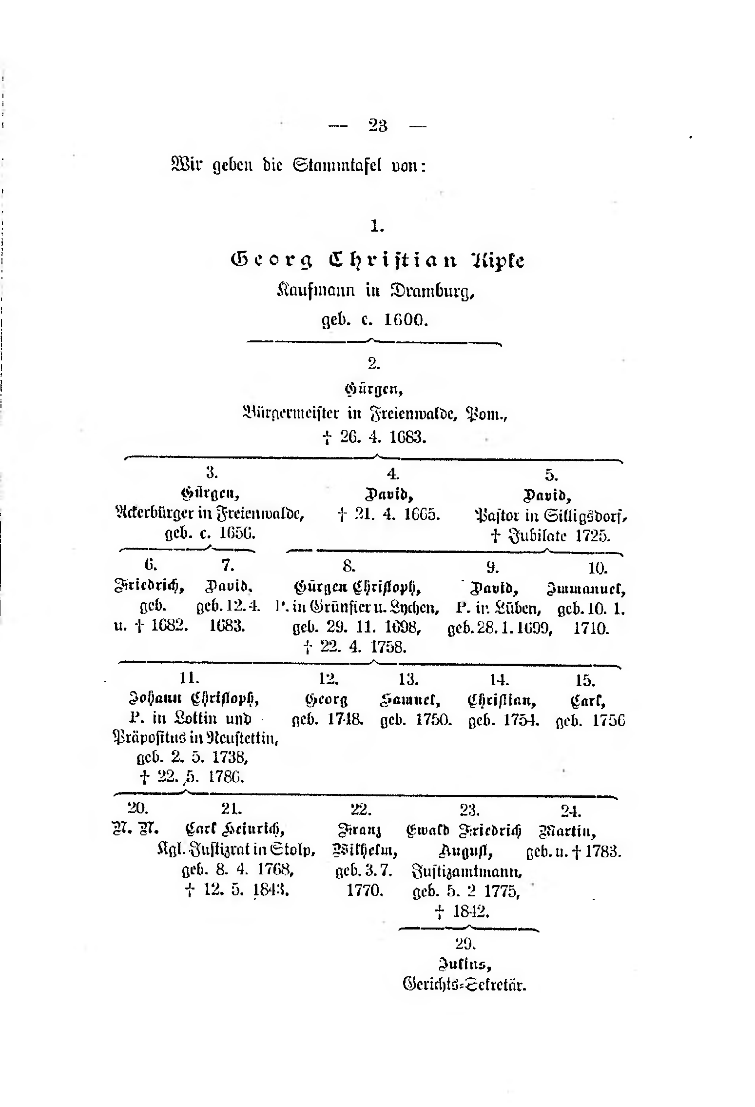 23. Ewald Friedrich August, Justizamtmann geb. 5. 2. 1775 + 1842 |