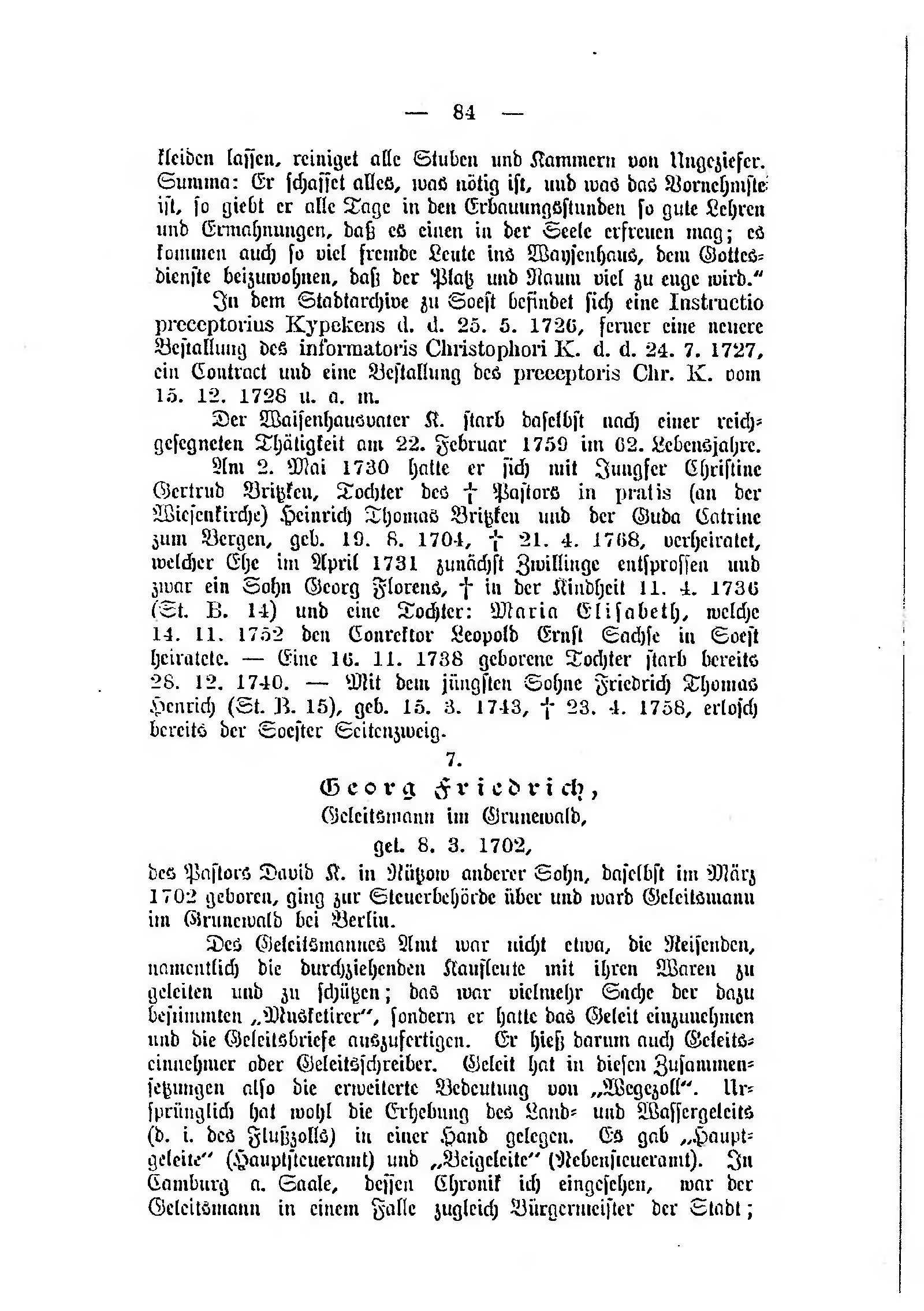 In dem Stadtarchive zu Soest befindet sich eine Instructio preceptorius Kypekens d. d. 25. 5. 1726, ferner eine neuere Bestallung des informatoris Christopheri K. d. d. 24. 7. 1727, ein Contract und eine Bestallung des preceptoris Chr. K. vom 15. 12. 1728 u. a. m.