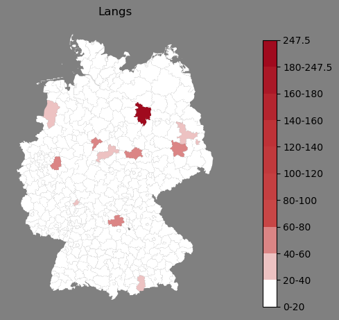 Absolute Verteilung des Namens Langs (1890)Direkt zur Karte Absolute Verteilung des Namens "Langs" um 1890 im damaligen Deutschen Reich Sie können die Karte innerhalb des Fensters zoomen und verschieben. |