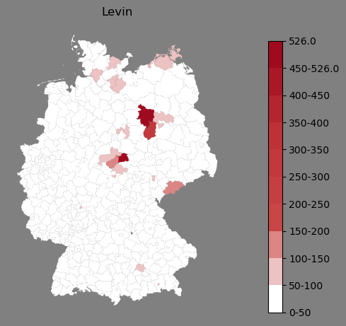 Absolute Verteilung des Namens Levin (1890)Direkt zur Karte Absolute Verteilung des Namens "Levin" um 1890 im damaligen Deutschen Reich Sie können die Karte innerhalb des Fensters zoomen und verschieben. |