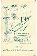 Hermann Liebsch aus B.Kamnitz wirbt für sein Atelier unter dem Begriff Kunst-Anstalt für Photographie und Malerei. Er bezeichnet sein Atelier als spezialisierte Anstalt für photographische Vergrößerungen bezüglich Ehren-Diplome, Ehren-Geschenke mit Porträt und Schautafeln für Vereine, Militär, Körperschaften u.s.w. Die künstlerischen Arbeiten werden bis zur Lebensgröße ausgeführt und dies in Retusche vom Feinsten, in Schwarz, Rötel und Sepia und in Pastell- und Aquarell-Varianten. Des Weiteren werden Ölgemälde auf Leinwand nach Photographien jeder Art in bester Qualität angefertigt. Identität und Haltbarkeit werden für diese Arbeiten garantiert. Die dem Photographen zuteil gewordenen Anerkennungsschreiben aus dem In- und Ausland liegen zur Einsichtnahme bereit. |