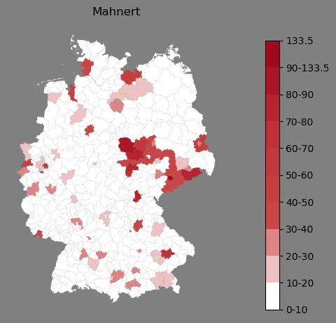 Absolute Verteilung des Namens Mahnert (1890)Direkt zur Karte Absolute Verteilung des Namens "Mahnert" um 1890 im damaligen Deutschen Reich Sie können die Karte innerhalb des Fensters zoomen und verschieben. |