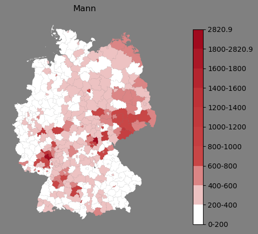 Absolute Verteilung des Namens Mann (1890)Direkt zur Karte Absolute Verteilung des Namens "Mann" um 1890 im damaligen Deutschen Reich Sie können die Karte innerhalb des Fensters zoomen und verschieben. |