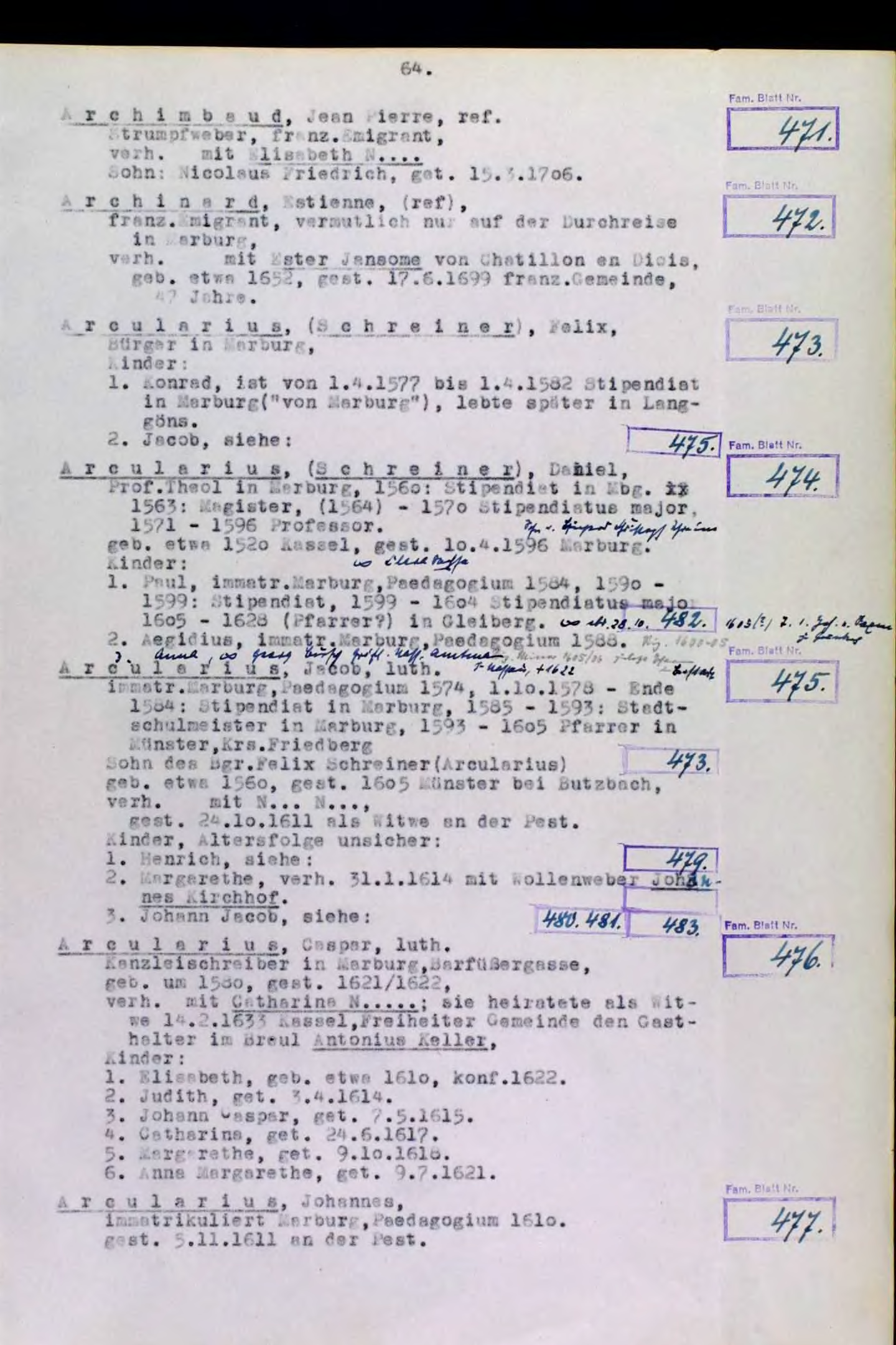 | Seit Fertigstellung des Marburger Sippenbuches 1950-1966 sind zahlreiche Ergänzungen und auch notwendige Korrekturen bekannt geworden. Bitte beachten Sie daher unbedingt die Ergänzungen und Korrekturen zu dieser Seite. Wenn Sie selbst Ergänzungen vornehmen möchten, wenden Sie sich bitte an Benutzer:Ernestus. |