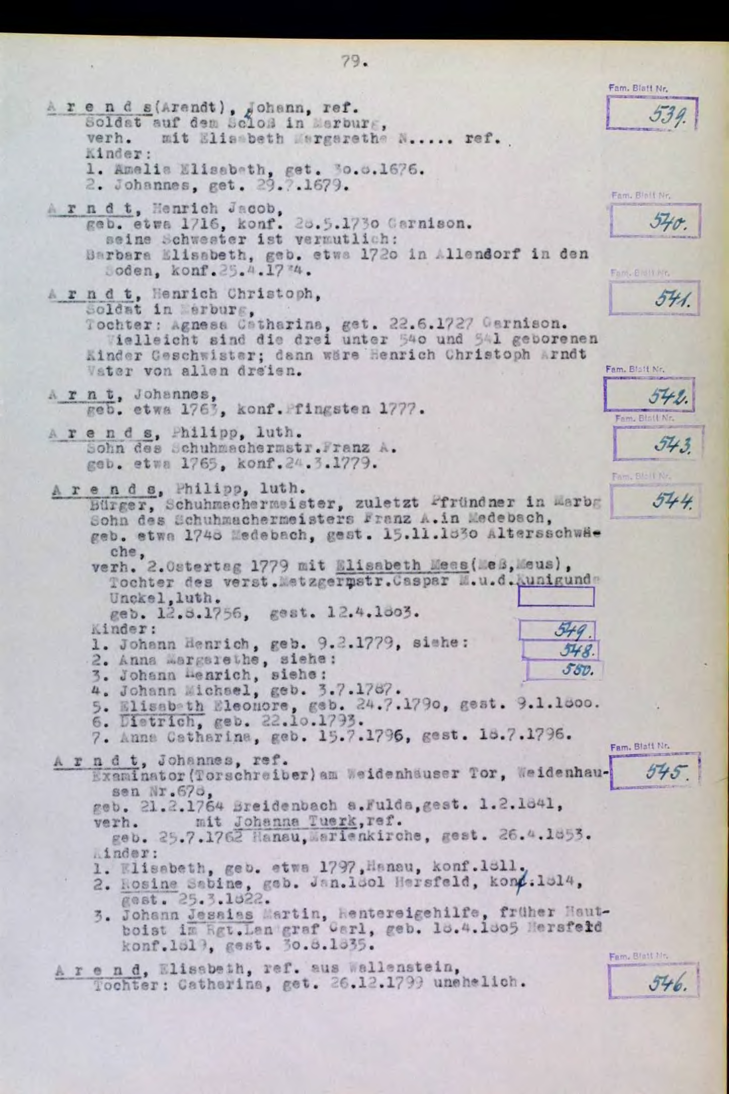 | Seit Fertigstellung des Marburger Sippenbuches 1950-1966 sind zahlreiche Ergänzungen und auch notwendige Korrekturen bekannt geworden. Zur aktuellen Seite existiert noch keine Ergänzunges- und Korrekturseite. Wenn Sie selbst Ergänzungen vornehmen möchten, wenden Sie sich bitte an Benutzer:Ernestus. |