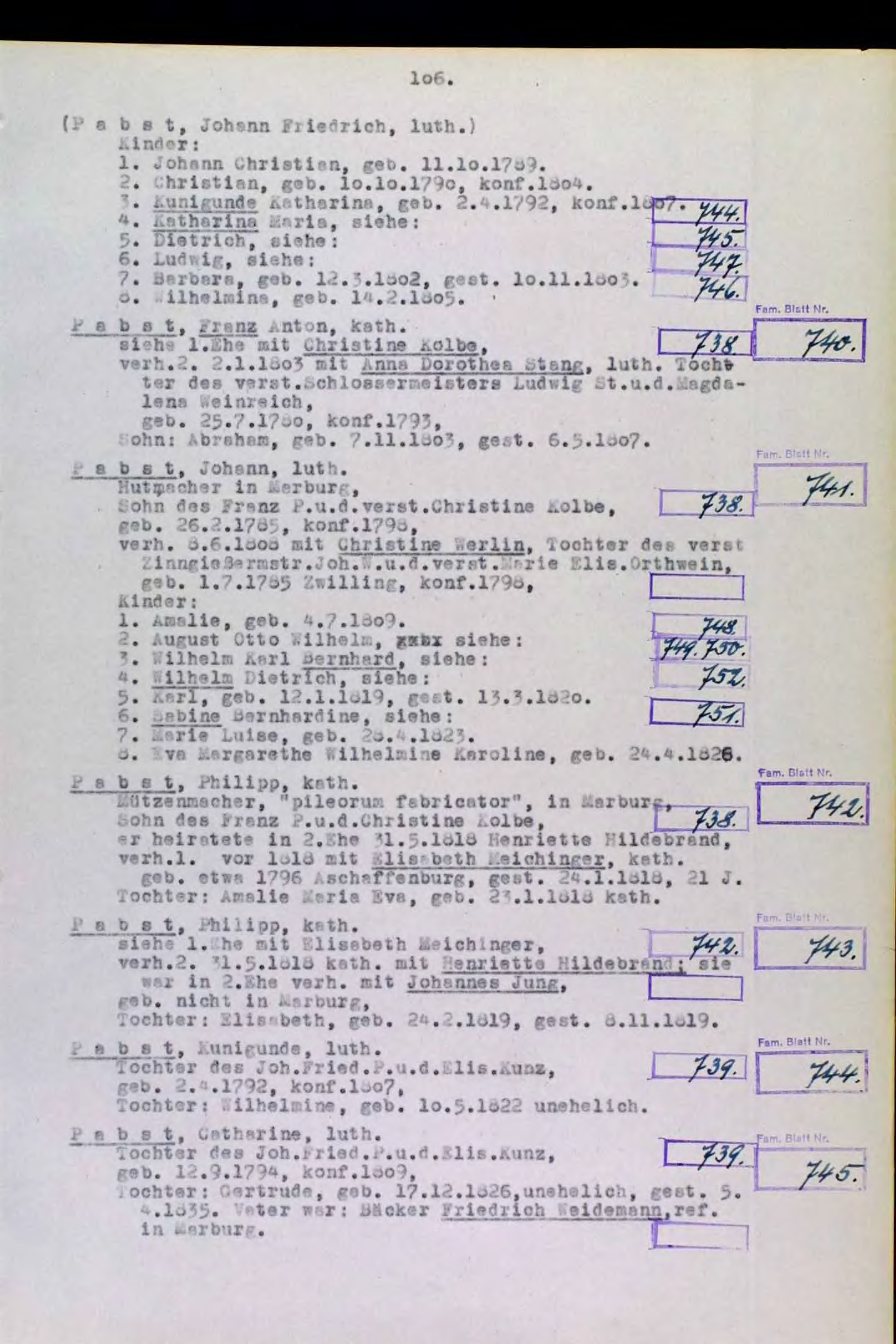 Info non-talk.svg Seit Fertigstellung des Marburger Sippenbuches 1950-1966 sind zahlreiche Ergänzungen und auch notwendige Korrekturen bekannt geworden. Zur aktuellen Seite existiert noch keine Ergänzunges- und Korrekturseite. Wenn Sie selbst Ergänzungen vornehmen möchten, wenden Sie sich bitte an Benutzer:Ernestus.