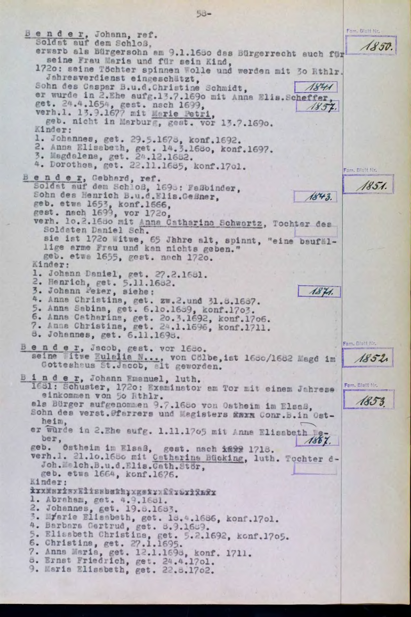 | Seit Fertigstellung des Marburger Sippenbuches 1950-1966 sind zahlreiche Ergänzungen und auch notwendige Korrekturen bekannt geworden. Zur aktuellen Seite existiert noch keine Ergänzunges- und Korrekturseite. Wenn Sie selbst Ergänzungen vornehmen möchten, wenden Sie sich bitte an Benutzer:Ernestus. |