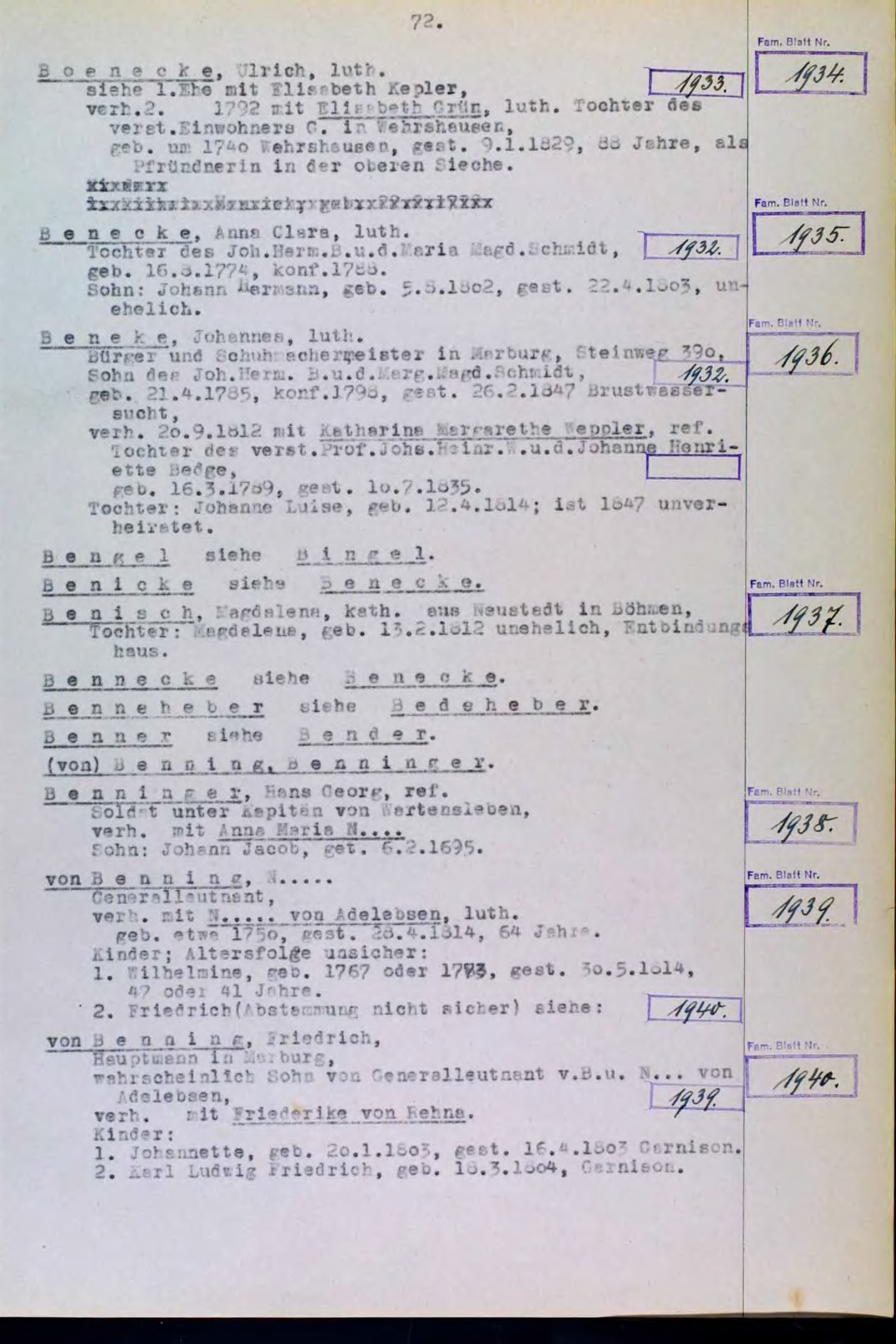 Info non-talk.svg Seit Fertigstellung des Marburger Sippenbuches 1950-1966 sind zahlreiche Ergänzungen und auch notwendige Korrekturen bekannt geworden. Zur aktuellen Seite existiert noch keine Ergänzunges- und Korrekturseite. Wenn Sie selbst Ergänzungen vornehmen möchten, wenden Sie sich bitte an Benutzer:Ernestus.