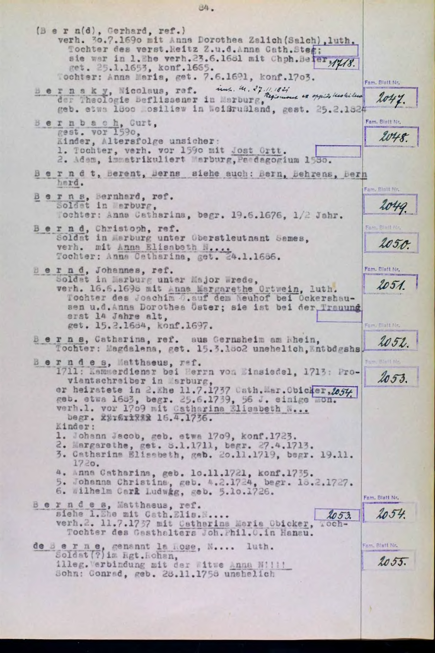 Info non-talk.svg Seit Fertigstellung des Marburger Sippenbuches 1950-1966 sind zahlreiche Ergänzungen und auch notwendige Korrekturen bekannt geworden. Zur aktuellen Seite existiert noch keine Ergänzunges- und Korrekturseite. Wenn Sie selbst Ergänzungen vornehmen möchten, wenden Sie sich bitte an Benutzer:Ernestus.