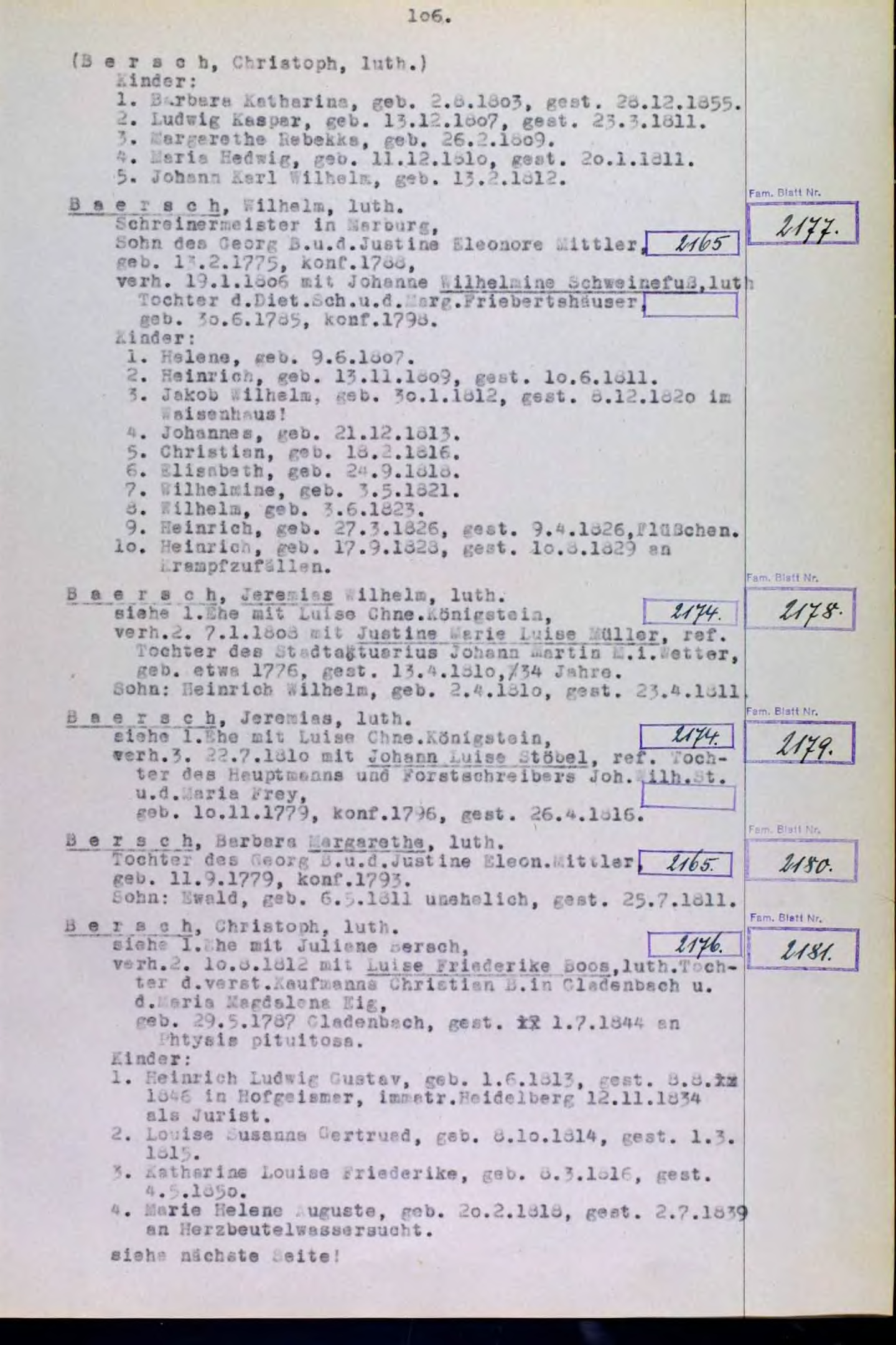 | Seit Fertigstellung des Marburger Sippenbuches 1950-1966 sind zahlreiche Ergänzungen und auch notwendige Korrekturen bekannt geworden. Zur aktuellen Seite existiert noch keine Ergänzunges- und Korrekturseite. Wenn Sie selbst Ergänzungen vornehmen möchten, wenden Sie sich bitte an Benutzer:Ernestus. |