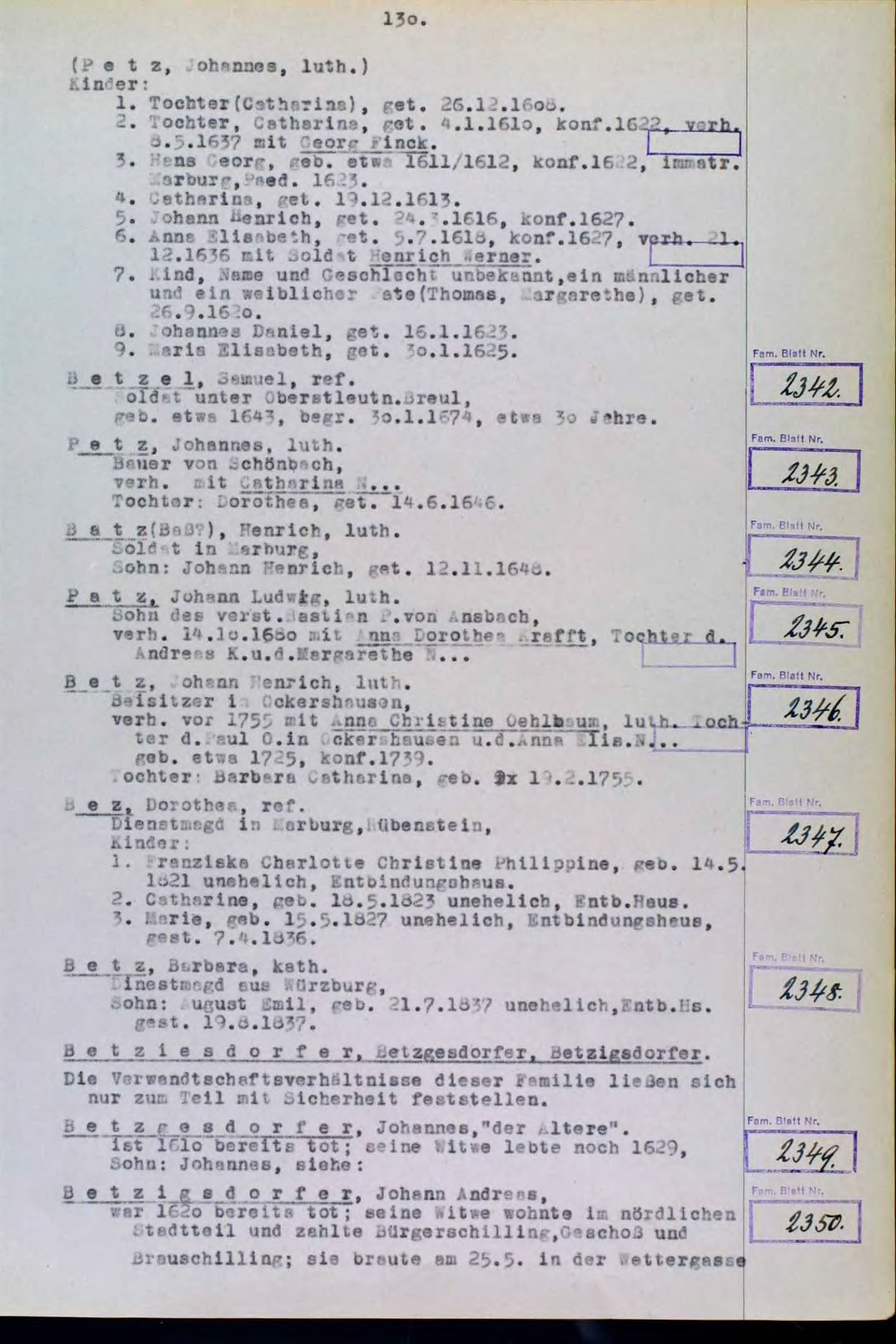 | Seit Fertigstellung des Marburger Sippenbuches 1950-1966 sind zahlreiche Ergänzungen und auch notwendige Korrekturen bekannt geworden. Zur aktuellen Seite existiert noch keine Ergänzunges- und Korrekturseite. Wenn Sie selbst Ergänzungen vornehmen möchten, wenden Sie sich bitte an Benutzer:Ernestus. |