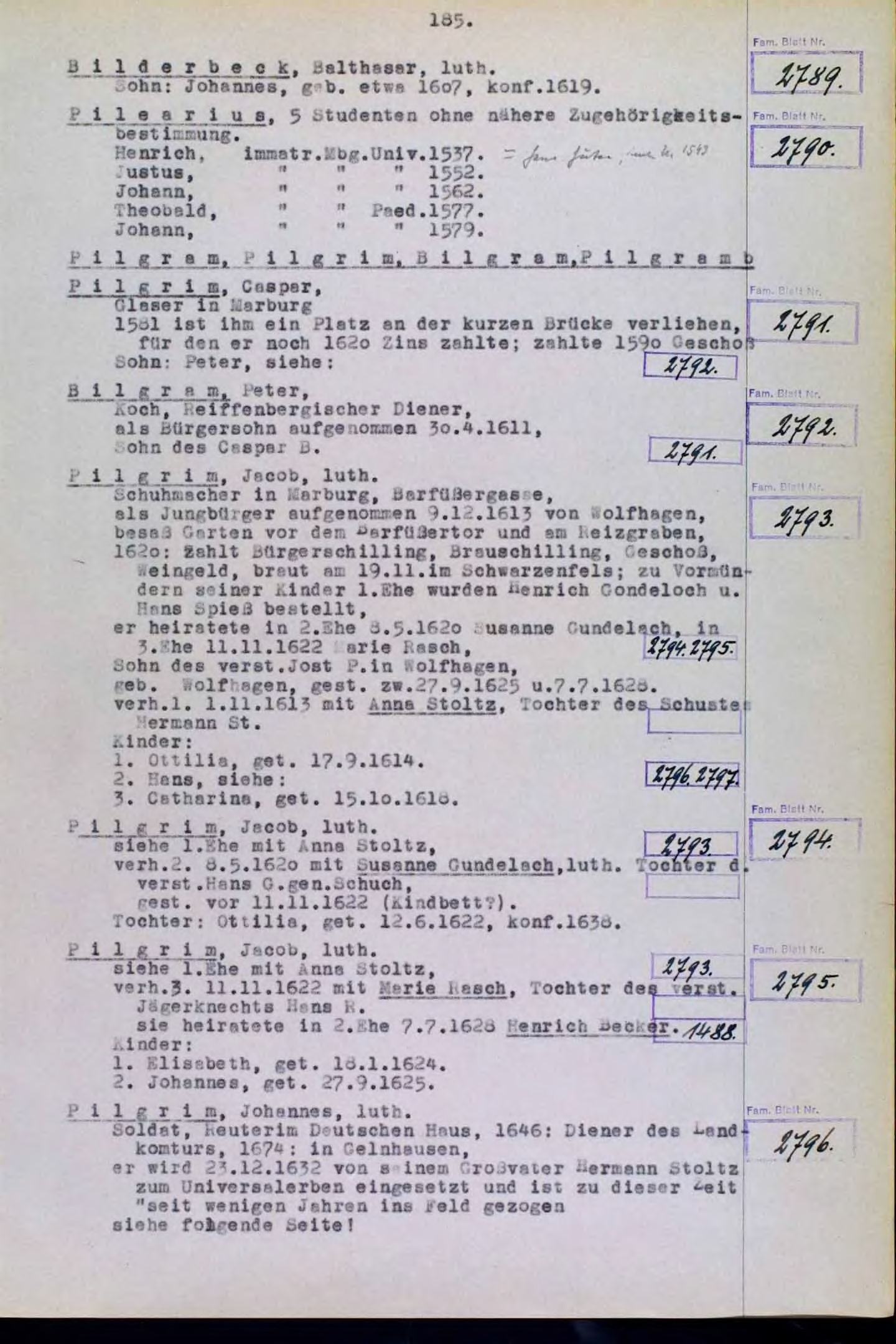 Info non-talk.svg Seit Fertigstellung des Marburger Sippenbuches 1950-1966 sind zahlreiche Ergänzungen und auch notwendige Korrekturen bekannt geworden. Zur aktuellen Seite existiert noch keine Ergänzunges- und Korrekturseite. Wenn Sie selbst Ergänzungen vornehmen möchten, wenden Sie sich bitte an Benutzer:Ernestus.