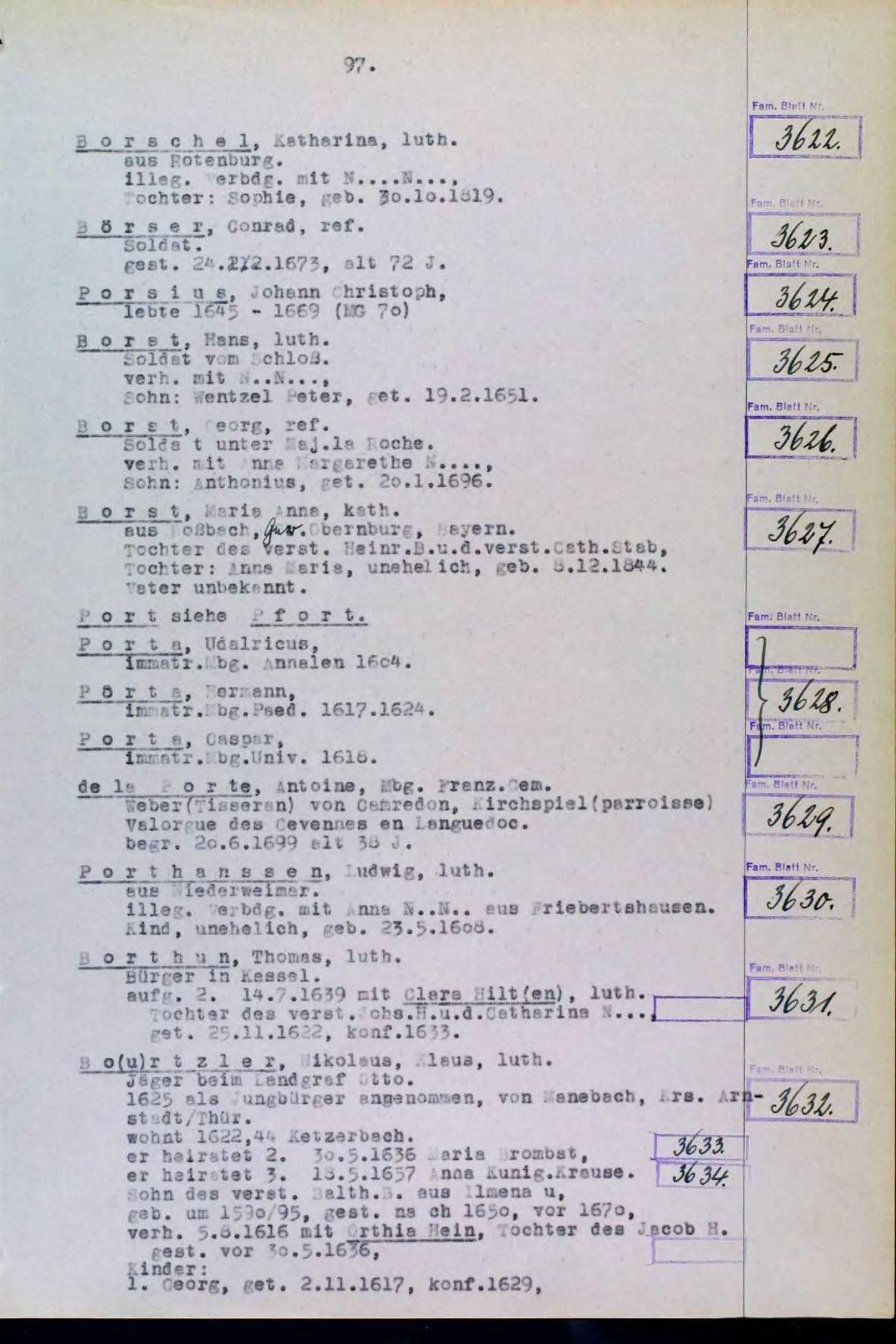 | Seit Fertigstellung des Marburger Sippenbuches 1950-1966 sind zahlreiche Ergänzungen und auch notwendige Korrekturen bekannt geworden. Zur aktuellen Seite existiert noch keine Ergänzunges- und Korrekturseite. Wenn Sie selbst Ergänzungen vornehmen möchten, wenden Sie sich bitte an Benutzer:Ernestus. |