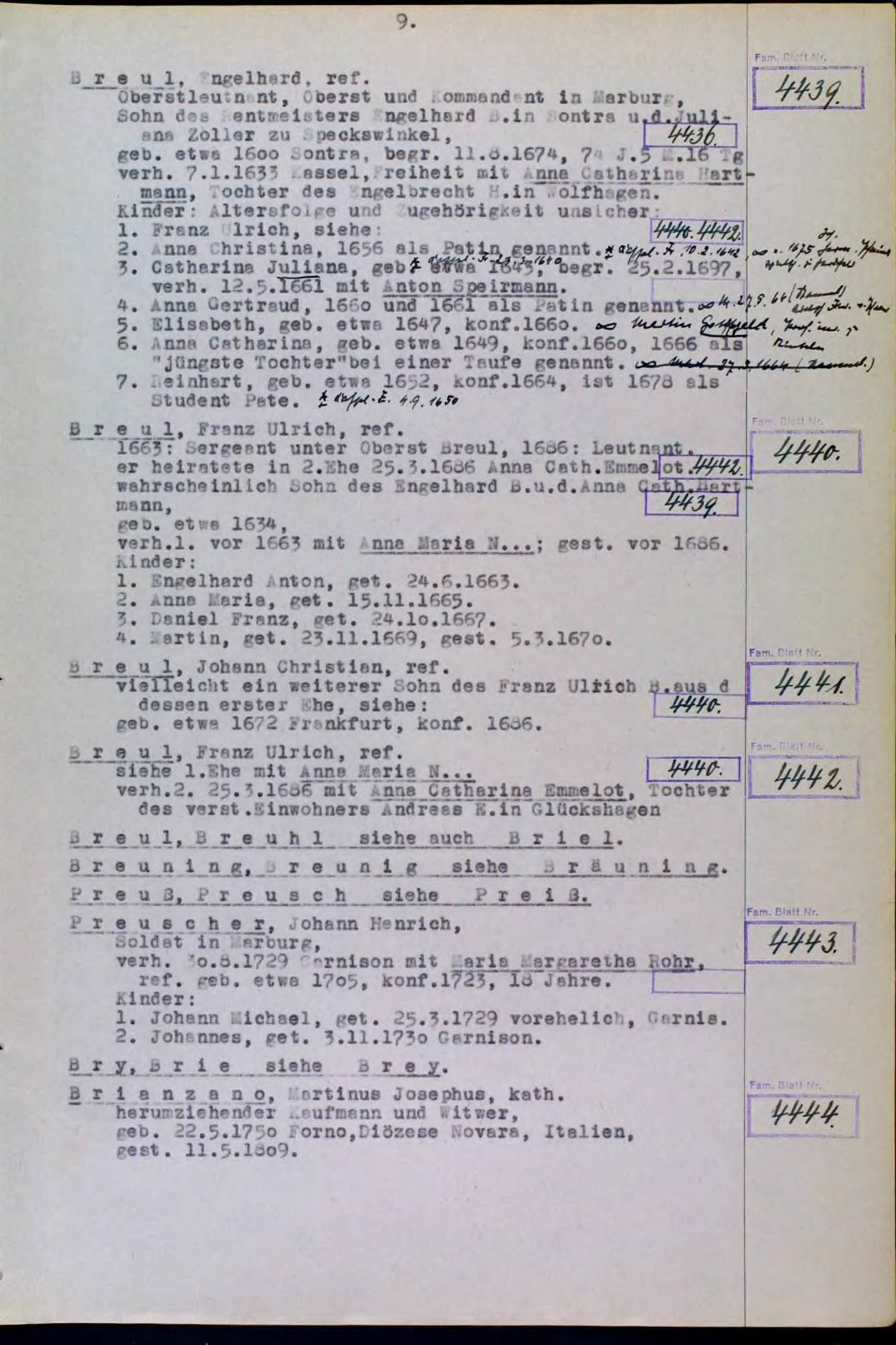 Info non-talk.svg Seit Fertigstellung des Marburger Sippenbuches 1950-1966 sind zahlreiche Ergänzungen und auch notwendige Korrekturen bekannt geworden. Zur aktuellen Seite existiert noch keine Ergänzunges- und Korrekturseite. Wenn Sie selbst Ergänzungen vornehmen möchten, wenden Sie sich bitte an Benutzer:Ernestus.