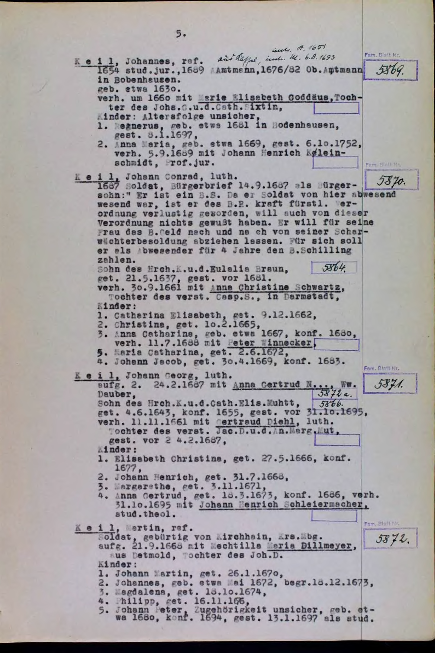 Info non-talk.svg Seit Fertigstellung des Marburger Sippenbuches 1950-1966 sind zahlreiche Ergänzungen und auch notwendige Korrekturen bekannt geworden. Zur aktuellen Seite existiert noch keine Ergänzunges- und Korrekturseite. Wenn Sie selbst Ergänzungen vornehmen möchten, wenden Sie sich bitte an Benutzer:Ernestus.