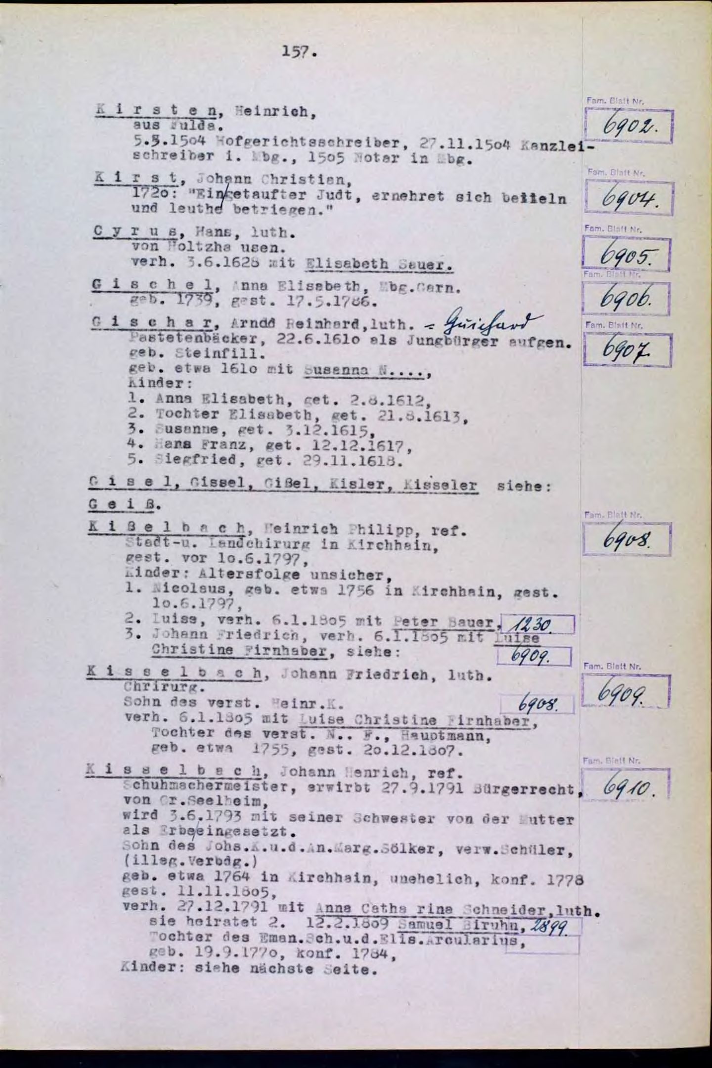 | Seit Fertigstellung des Marburger Sippenbuches 1950-1966 sind zahlreiche Ergänzungen und auch notwendige Korrekturen bekannt geworden. Zur aktuellen Seite existiert noch keine Ergänzunges- und Korrekturseite. Wenn Sie selbst Ergänzungen vornehmen möchten, wenden Sie sich bitte an Benutzer:Ernestus. |