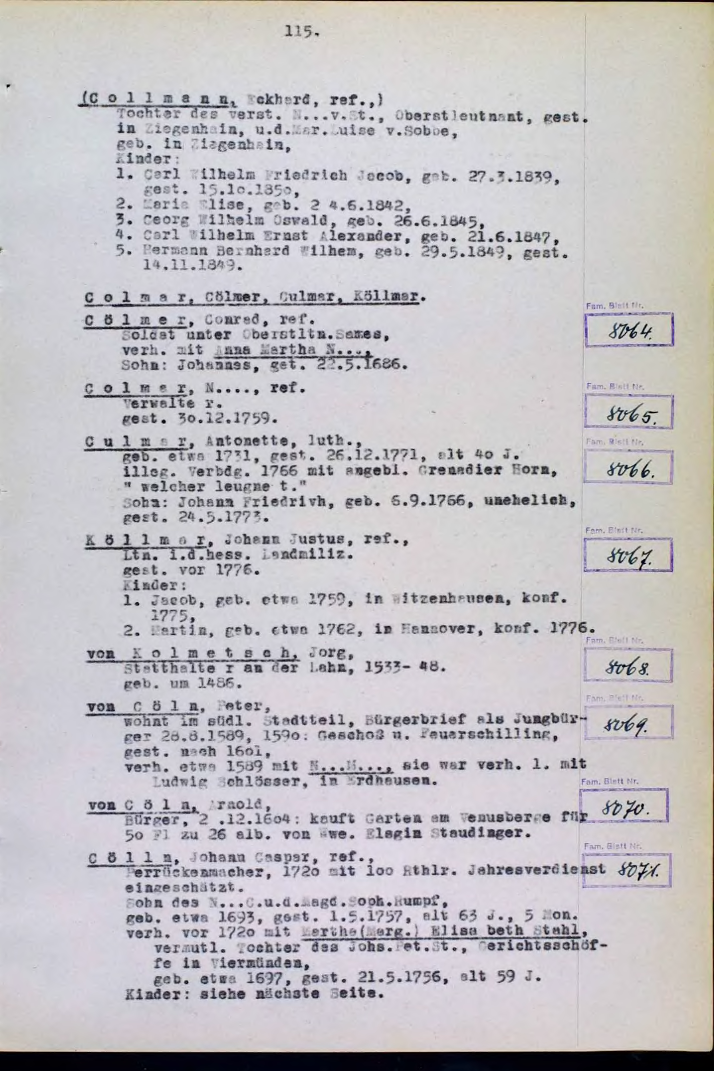 | Seit Fertigstellung des Marburger Sippenbuches 1950-1966 sind zahlreiche Ergänzungen und auch notwendige Korrekturen bekannt geworden. Zur aktuellen Seite existiert noch keine Ergänzunges- und Korrekturseite. Wenn Sie selbst Ergänzungen vornehmen möchten, wenden Sie sich bitte an Benutzer:Ernestus. |