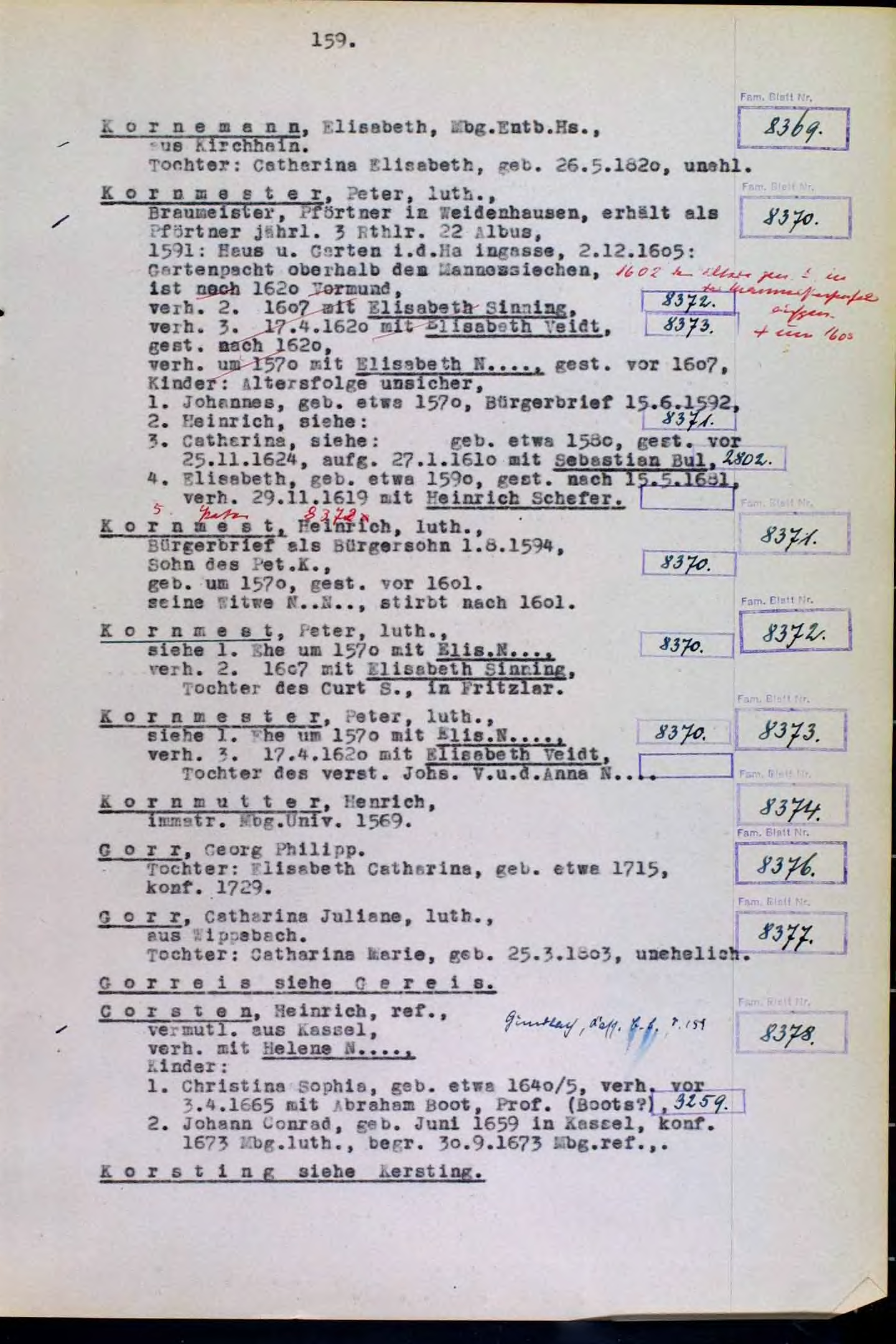 | Seit Fertigstellung des Marburger Sippenbuches 1950-1966 sind zahlreiche Ergänzungen und auch notwendige Korrekturen bekannt geworden. Zur aktuellen Seite existiert noch keine Ergänzunges- und Korrekturseite. Wenn Sie selbst Ergänzungen vornehmen möchten, wenden Sie sich bitte an Benutzer:Ernestus. |