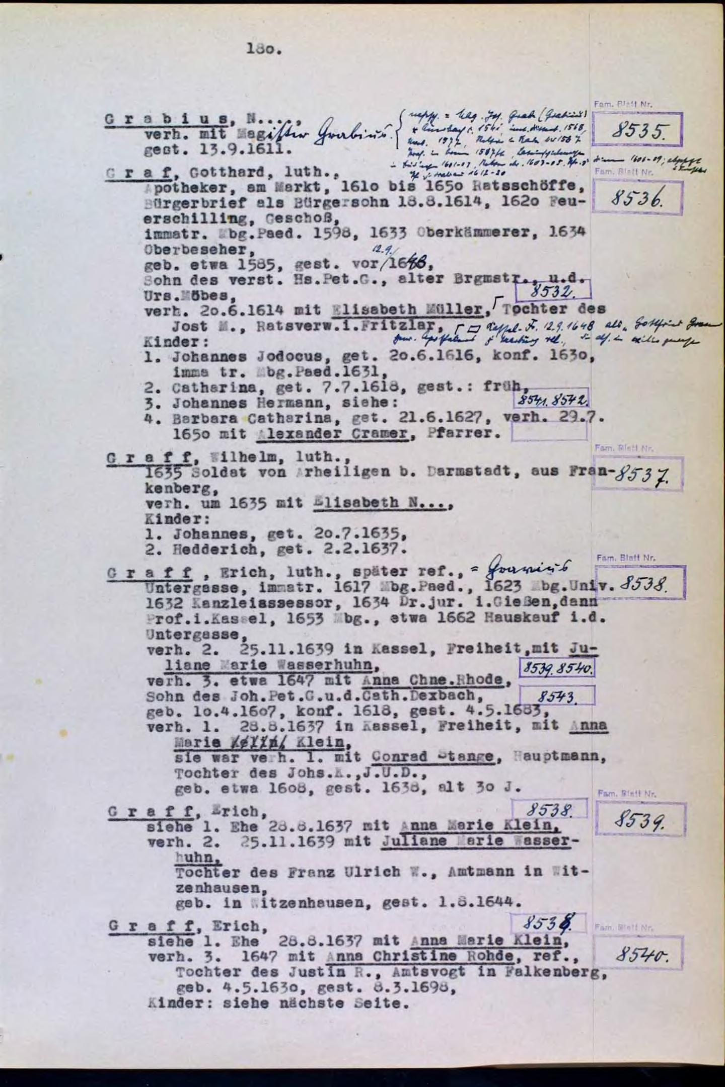 | Seit Fertigstellung des Marburger Sippenbuches 1950-1966 sind zahlreiche Ergänzungen und auch notwendige Korrekturen bekannt geworden. Zur aktuellen Seite existiert noch keine Ergänzunges- und Korrekturseite. Wenn Sie selbst Ergänzungen vornehmen möchten, wenden Sie sich bitte an Benutzer:Ernestus. |