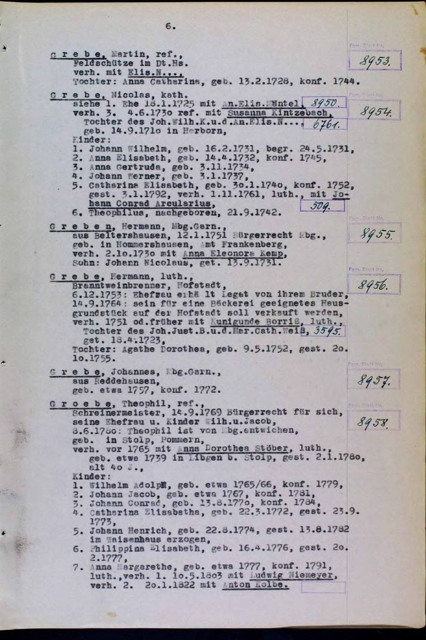 | Seit Fertigstellung des Marburger Sippenbuches 1950-1966 sind zahlreiche Ergänzungen und auch notwendige Korrekturen bekannt geworden. Zur aktuellen Seite existiert noch keine Ergänzunges- und Korrekturseite. Wenn Sie selbst Ergänzungen vornehmen möchten, wenden Sie sich bitte an Benutzer:Ernestus. |