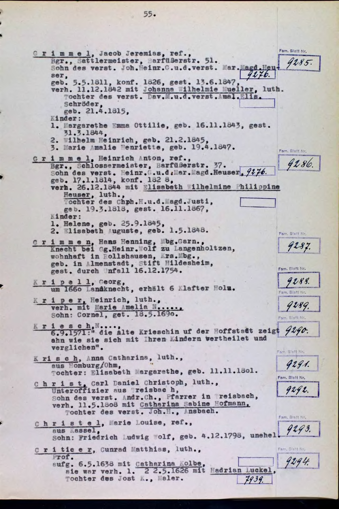 Info non-talk.svg Seit Fertigstellung des Marburger Sippenbuches 1950-1966 sind zahlreiche Ergänzungen und auch notwendige Korrekturen bekannt geworden. Zur aktuellen Seite existiert noch keine Ergänzunges- und Korrekturseite. Wenn Sie selbst Ergänzungen vornehmen möchten, wenden Sie sich bitte an Benutzer:Ernestus.
