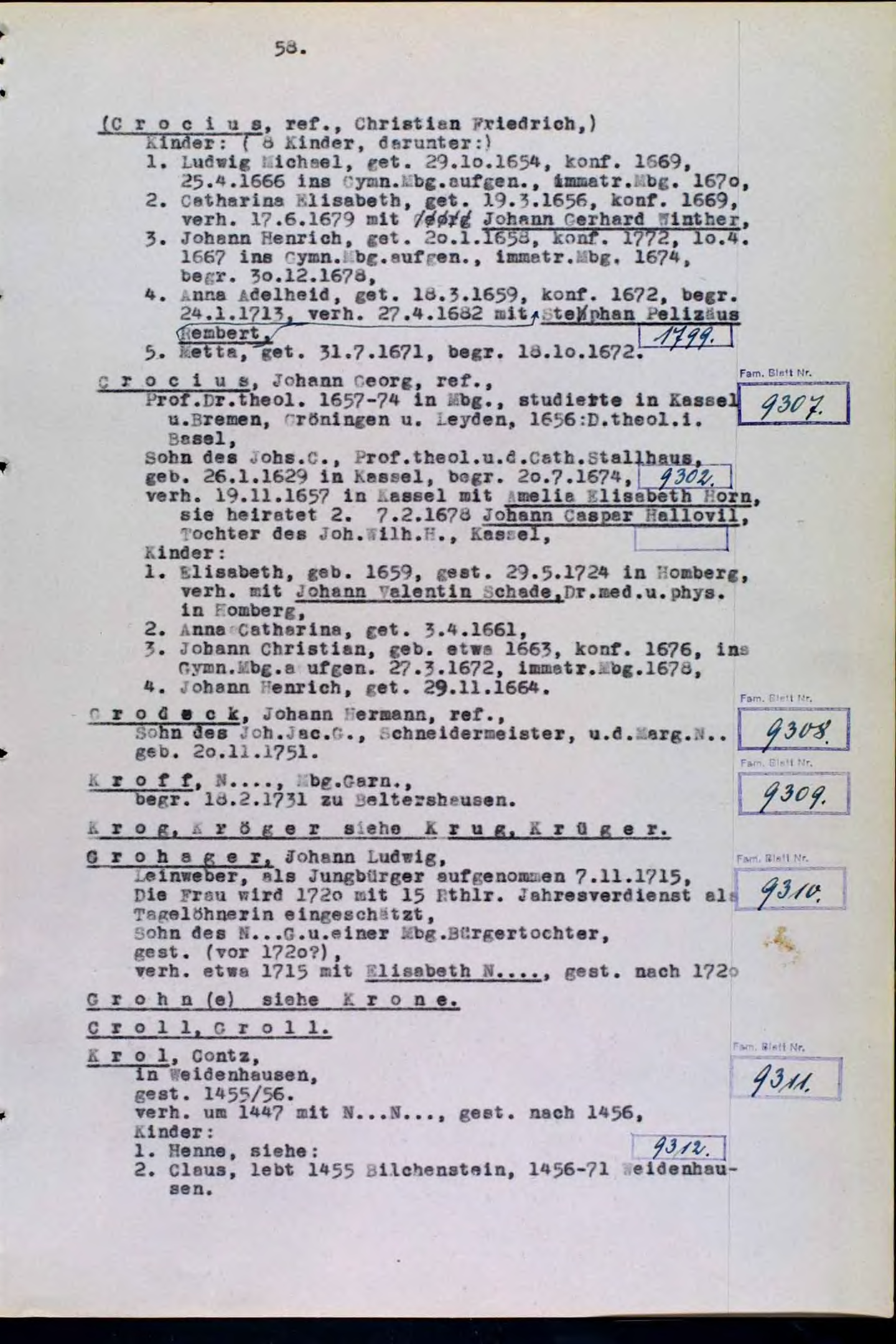 | Seit Fertigstellung des Marburger Sippenbuches 1950-1966 sind zahlreiche Ergänzungen und auch notwendige Korrekturen bekannt geworden. Zur aktuellen Seite existiert noch keine Ergänzunges- und Korrekturseite. Wenn Sie selbst Ergänzungen vornehmen möchten, wenden Sie sich bitte an Benutzer:Ernestus. |
