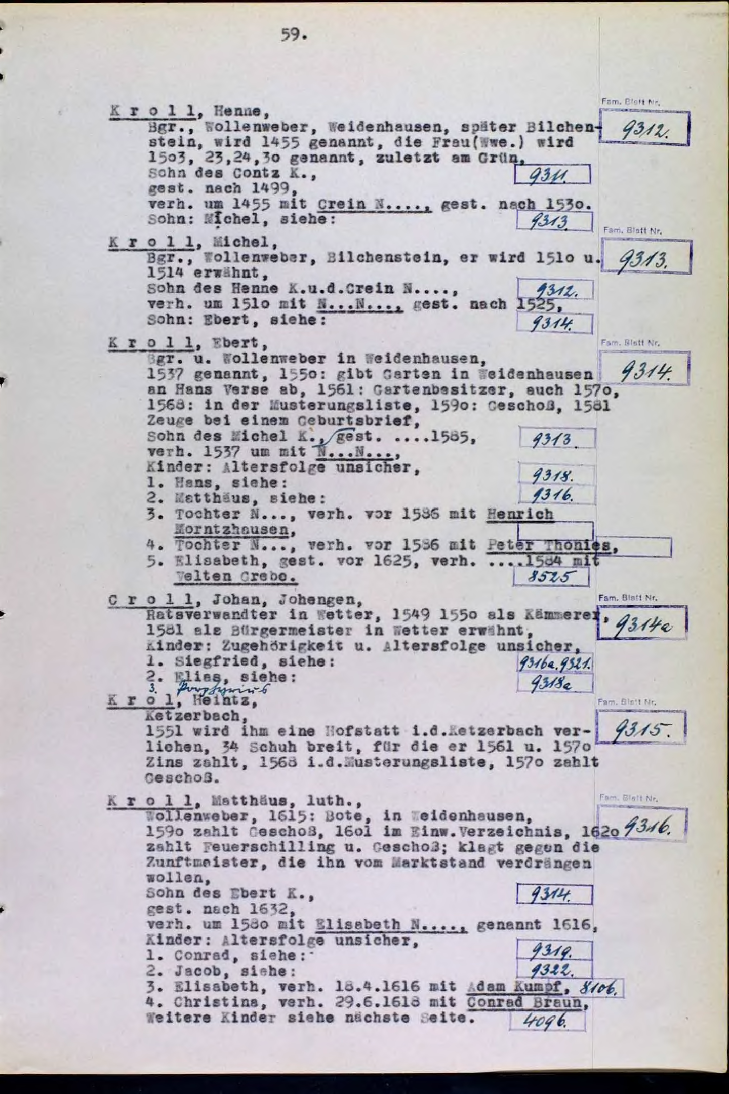Info non-talk.svg Seit Fertigstellung des Marburger Sippenbuches 1950-1966 sind zahlreiche Ergänzungen und auch notwendige Korrekturen bekannt geworden. Zur aktuellen Seite existiert noch keine Ergänzunges- und Korrekturseite. Wenn Sie selbst Ergänzungen vornehmen möchten, wenden Sie sich bitte an Benutzer:Ernestus.