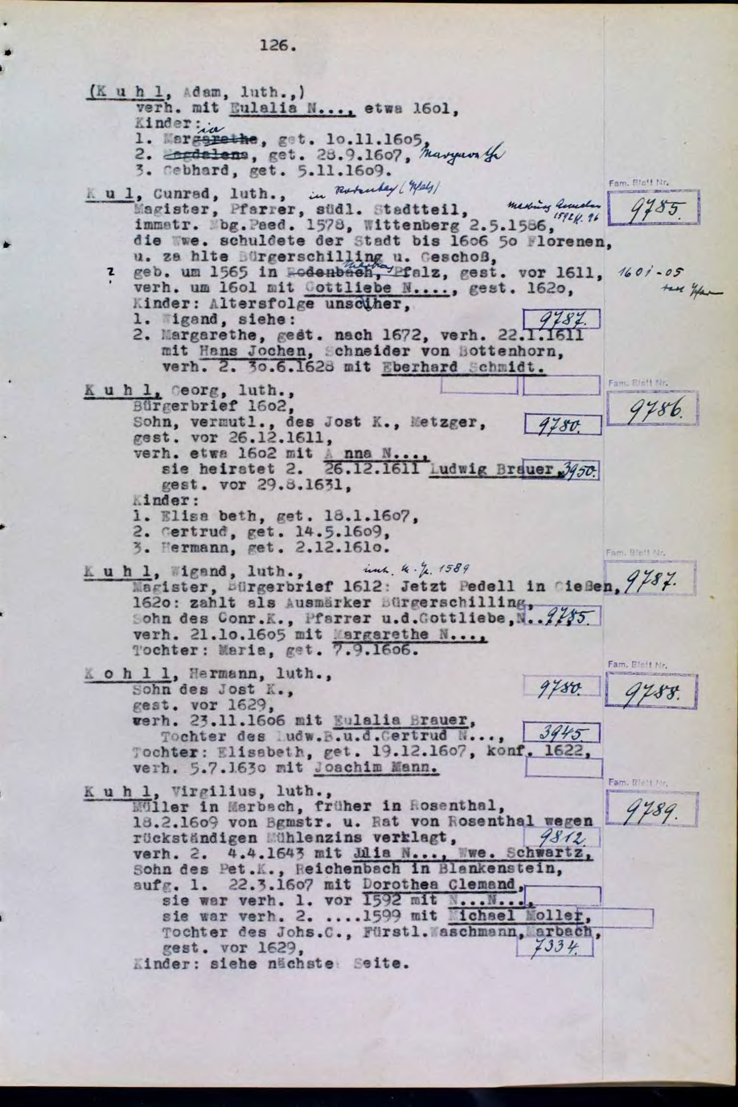Info non-talk.svg Seit Fertigstellung des Marburger Sippenbuches 1950-1966 sind zahlreiche Ergänzungen und auch notwendige Korrekturen bekannt geworden. Zur aktuellen Seite existiert noch keine Ergänzunges- und Korrekturseite. Wenn Sie selbst Ergänzungen vornehmen möchten, wenden Sie sich bitte an Benutzer:Ernestus.