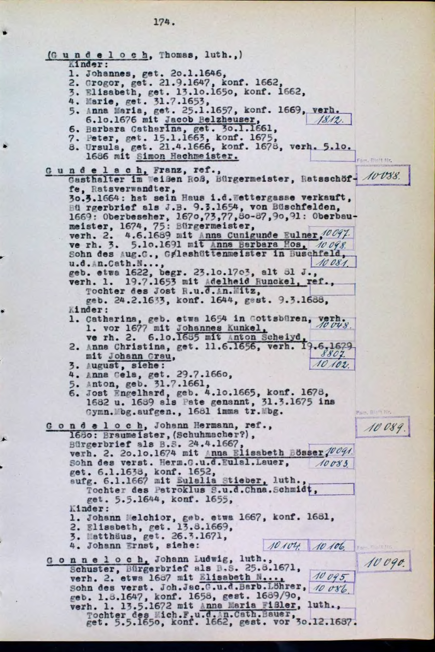 Info non-talk.svg Seit Fertigstellung des Marburger Sippenbuches 1950-1966 sind zahlreiche Ergänzungen und auch notwendige Korrekturen bekannt geworden. Zur aktuellen Seite existiert noch keine Ergänzunges- und Korrekturseite. Wenn Sie selbst Ergänzungen vornehmen möchten, wenden Sie sich bitte an Benutzer:Ernestus.