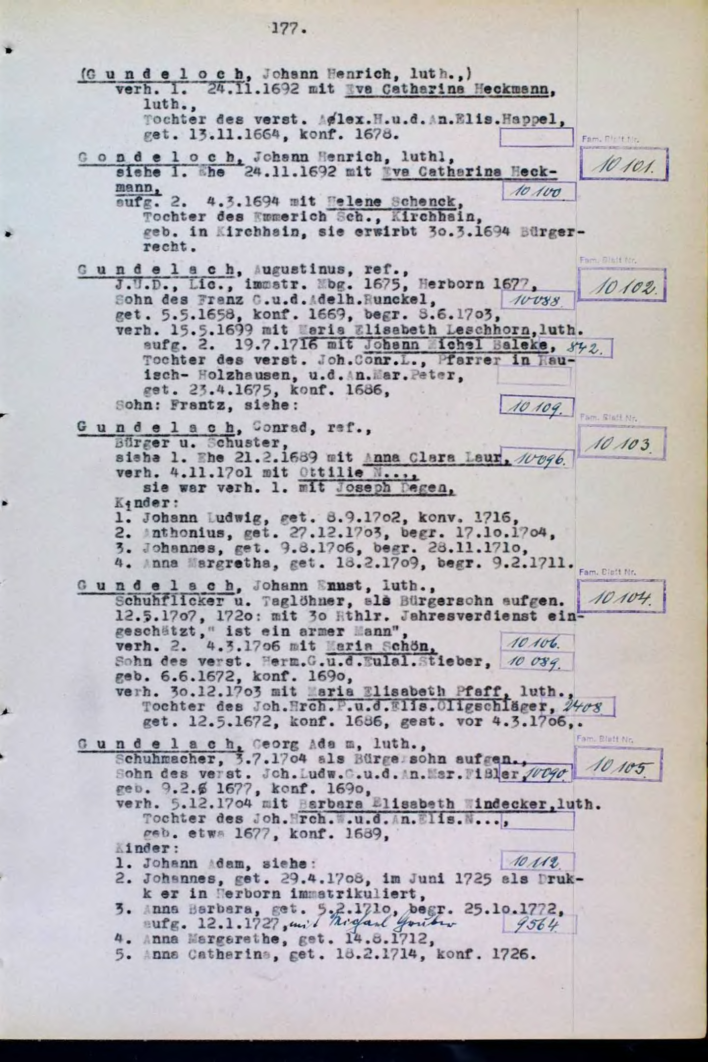 Info non-talk.svg Seit Fertigstellung des Marburger Sippenbuches 1950-1966 sind zahlreiche Ergänzungen und auch notwendige Korrekturen bekannt geworden. Zur aktuellen Seite existiert noch keine Ergänzunges- und Korrekturseite. Wenn Sie selbst Ergänzungen vornehmen möchten, wenden Sie sich bitte an Benutzer:Ernestus.