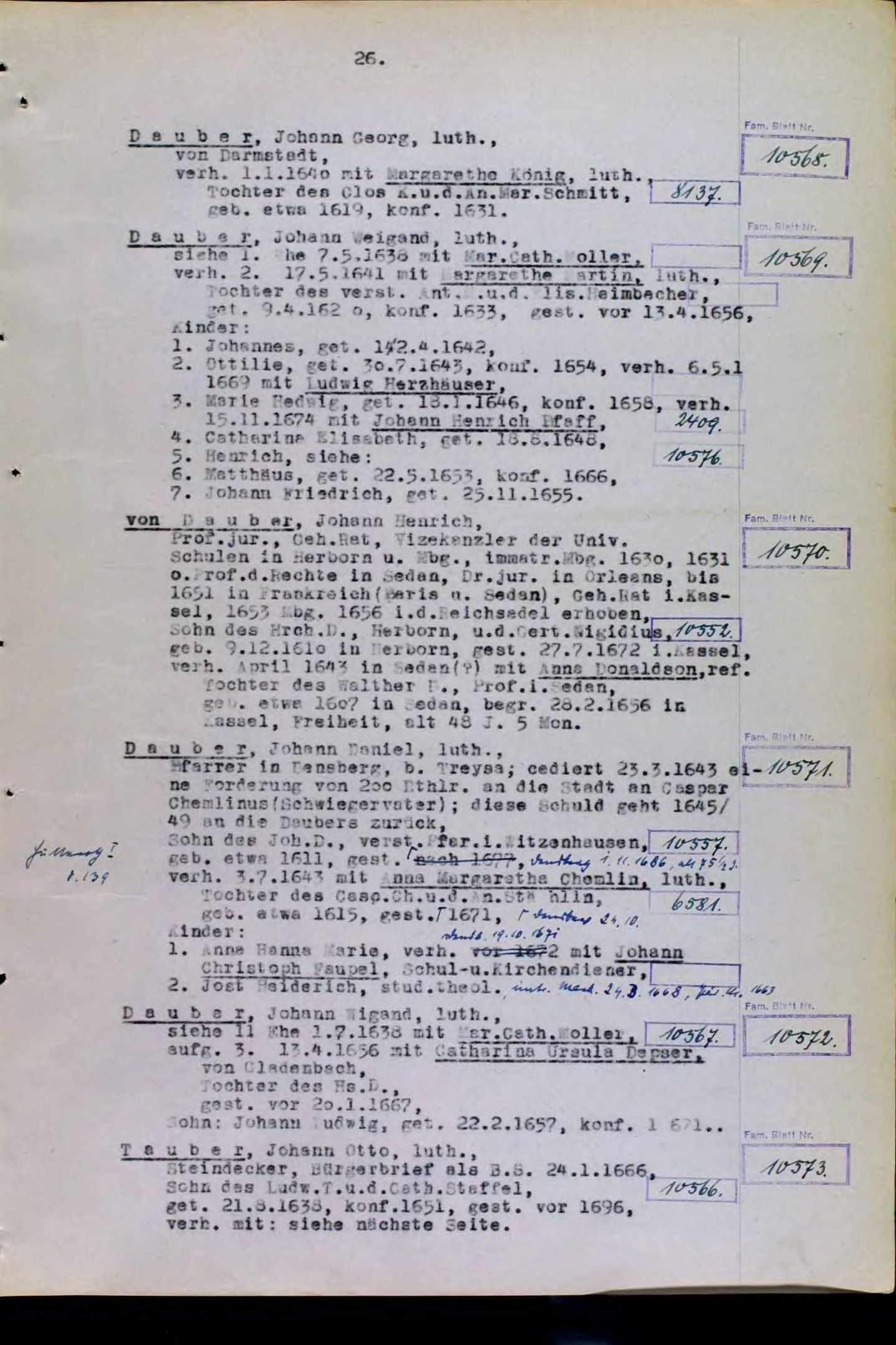 | Seit Fertigstellung des Marburger Sippenbuches 1950-1966 sind zahlreiche Ergänzungen und auch notwendige Korrekturen bekannt geworden. Zur aktuellen Seite existiert noch keine Ergänzunges- und Korrekturseite. Wenn Sie selbst Ergänzungen vornehmen möchten, wenden Sie sich bitte an Benutzer:Ernestus. |