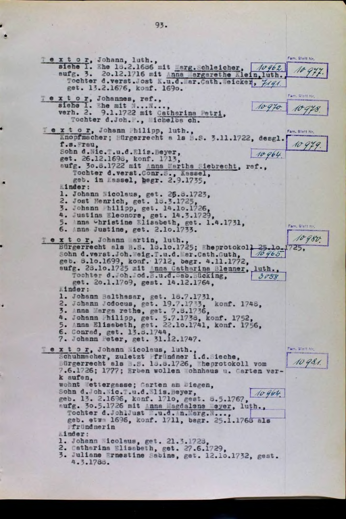 Info non-talk.svg Seit Fertigstellung des Marburger Sippenbuches 1950-1966 sind zahlreiche Ergänzungen und auch notwendige Korrekturen bekannt geworden. Zur aktuellen Seite existiert noch keine Ergänzunges- und Korrekturseite. Wenn Sie selbst Ergänzungen vornehmen möchten, wenden Sie sich bitte an Benutzer:Ernestus.