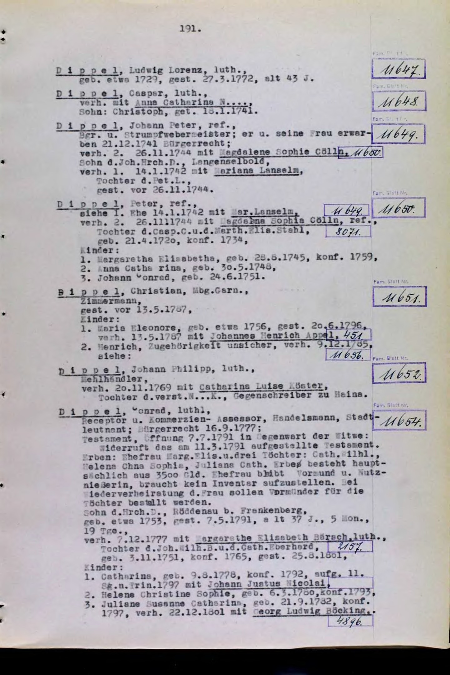 Info non-talk.svg Seit Fertigstellung des Marburger Sippenbuches 1950-1966 sind zahlreiche Ergänzungen und auch notwendige Korrekturen bekannt geworden. Zur aktuellen Seite existiert noch keine Ergänzunges- und Korrekturseite. Wenn Sie selbst Ergänzungen vornehmen möchten, wenden Sie sich bitte an Benutzer:Ernestus.