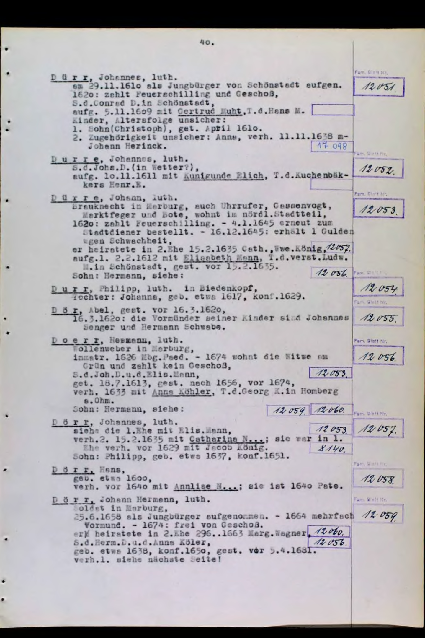 | Wenn Sie mit dem Marburger Sippenbuch noch nicht vertraut sind, sollten Sie die Benutzungshinweise beachten. |