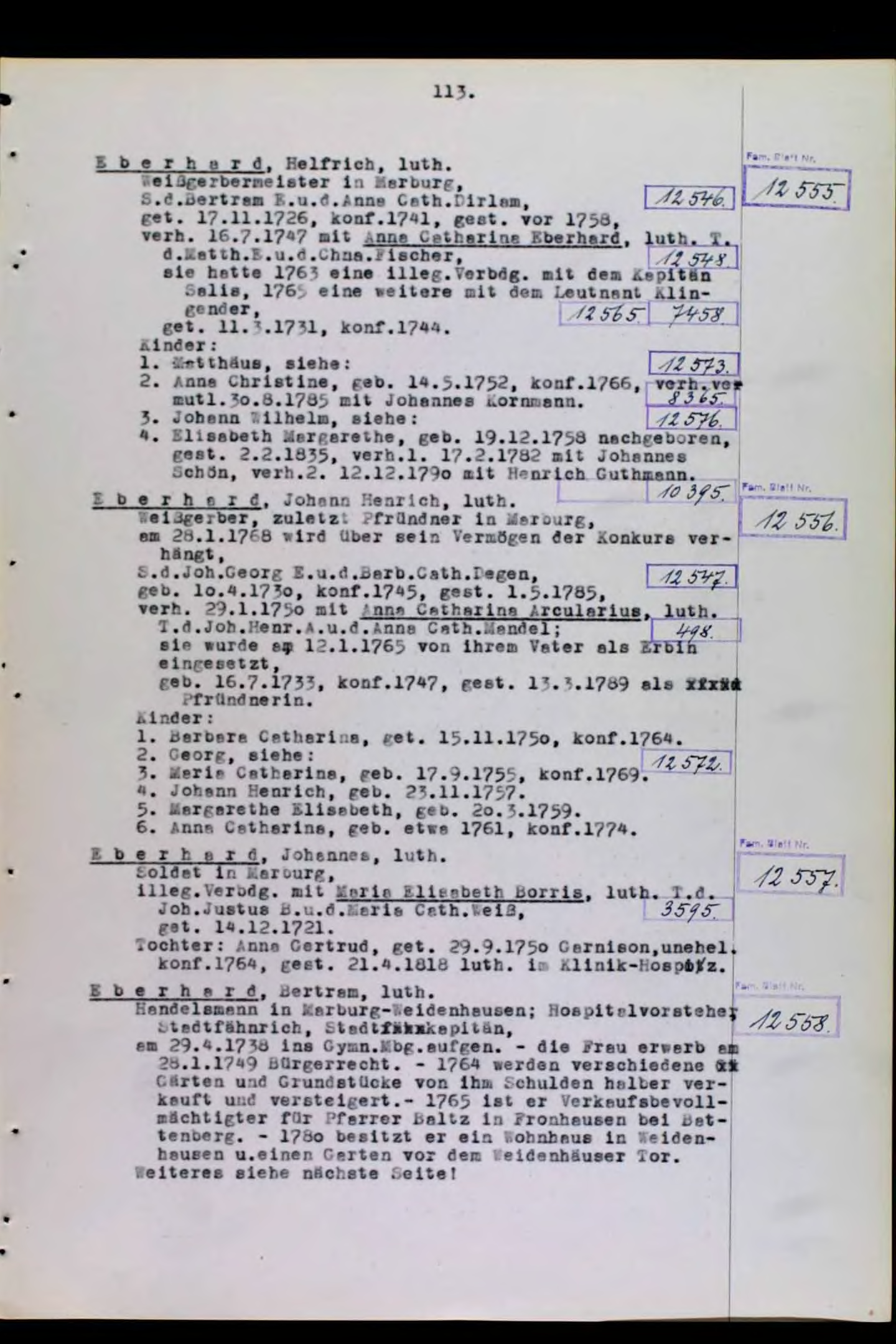 | Seit Fertigstellung des Marburger Sippenbuches 1950-1966 sind zahlreiche Ergänzungen und auch notwendige Korrekturen bekannt geworden. Zur aktuellen Seite existiert noch keine Ergänzunges- und Korrekturseite. Wenn Sie selbst Ergänzungen vornehmen möchten, wenden Sie sich bitte an Benutzer:Ernestus. |