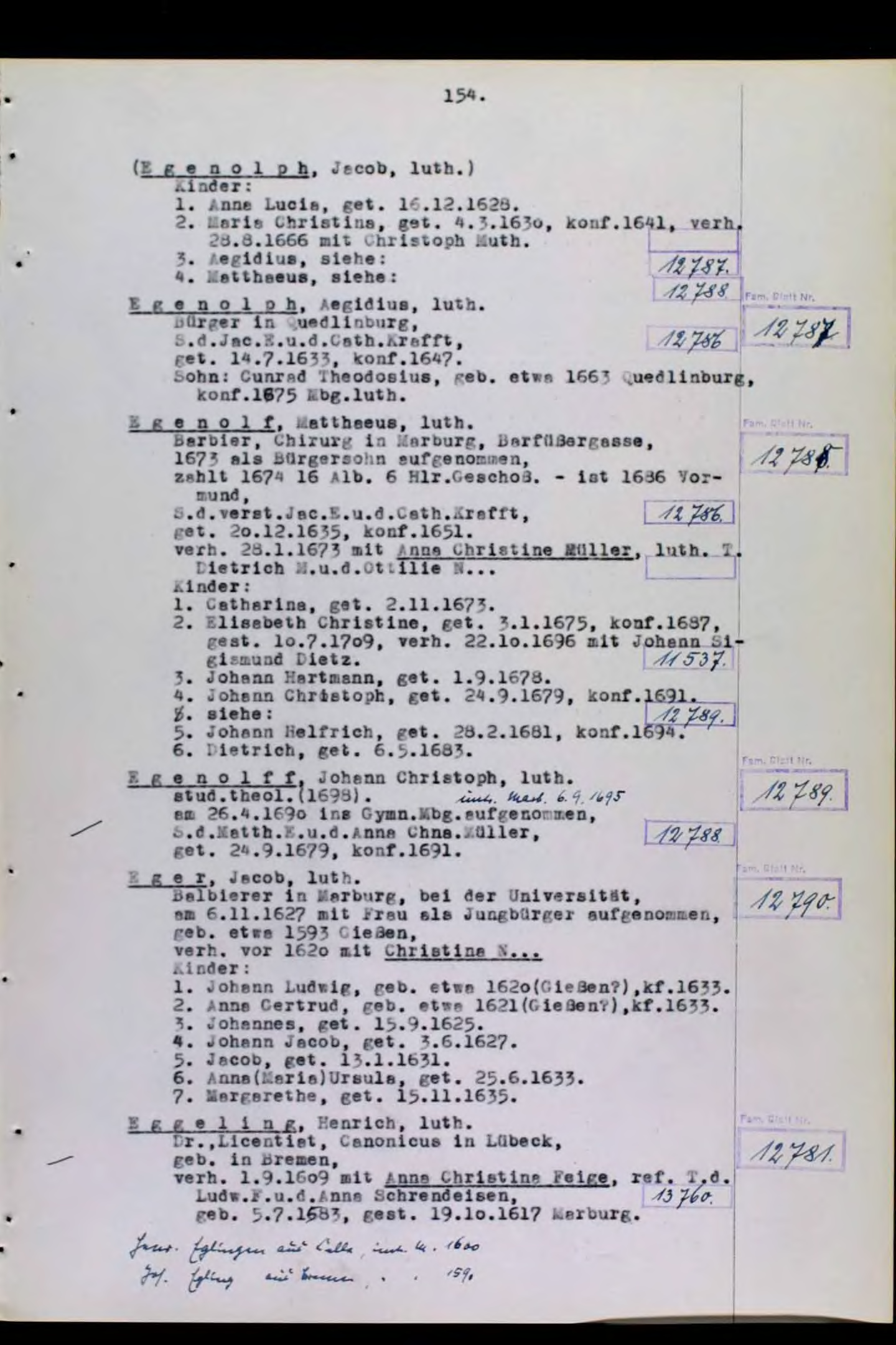 Info non-talk.svg Seit Fertigstellung des Marburger Sippenbuches 1950-1966 sind zahlreiche Ergänzungen und auch notwendige Korrekturen bekannt geworden. Zur aktuellen Seite existiert noch keine Ergänzunges- und Korrekturseite. Wenn Sie selbst Ergänzungen vornehmen möchten, wenden Sie sich bitte an Benutzer:Ernestus.