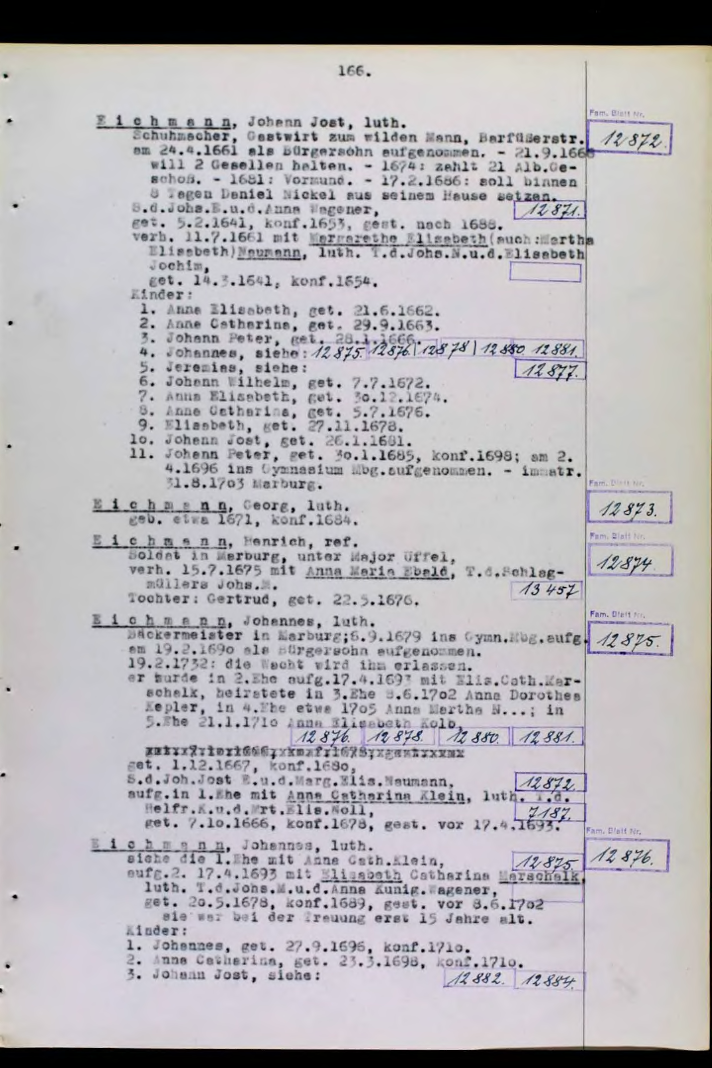 | Seit Fertigstellung des Marburger Sippenbuches 1950-1966 sind zahlreiche Ergänzungen und auch notwendige Korrekturen bekannt geworden. Zur aktuellen Seite existiert noch keine Ergänzunges- und Korrekturseite. Wenn Sie selbst Ergänzungen vornehmen möchten, wenden Sie sich bitte an Benutzer:Ernestus. |