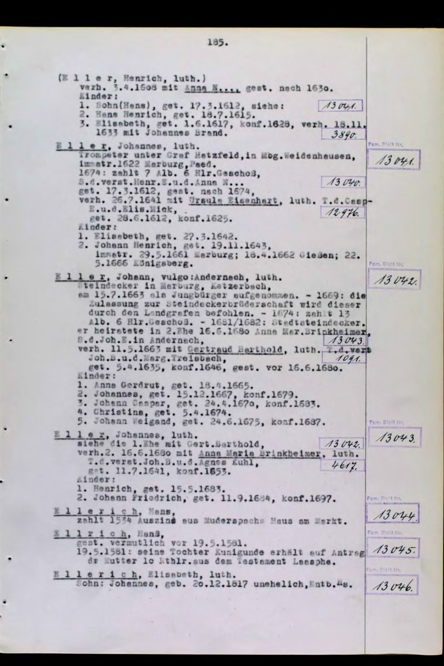 | Seit Fertigstellung des Marburger Sippenbuches 1950-1966 sind zahlreiche Ergänzungen und auch notwendige Korrekturen bekannt geworden. Zur aktuellen Seite existiert noch keine Ergänzunges- und Korrekturseite. Wenn Sie selbst Ergänzungen vornehmen möchten, wenden Sie sich bitte an Benutzer:Ernestus. |