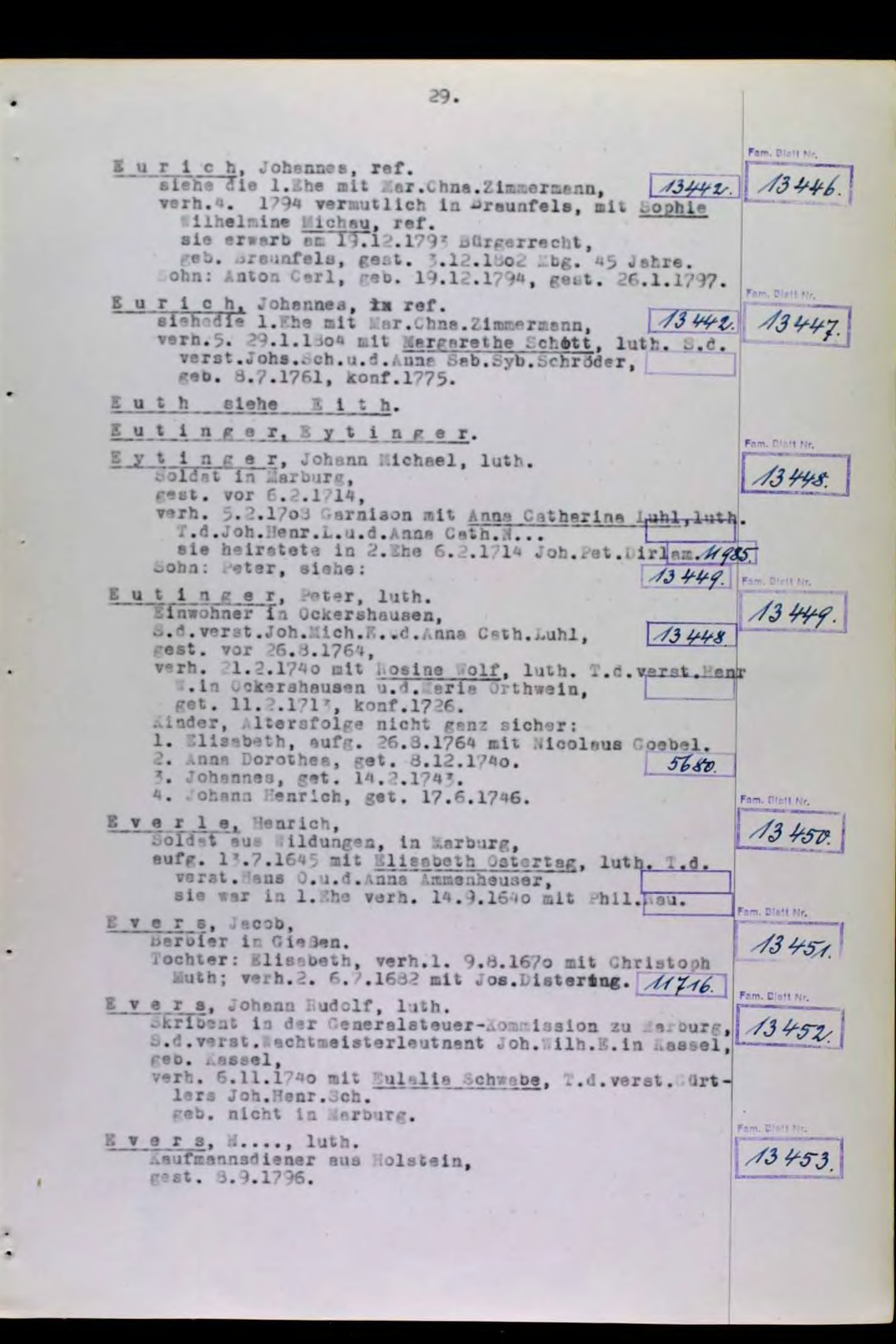 | Seit Fertigstellung des Marburger Sippenbuches 1950-1966 sind zahlreiche Ergänzungen und auch notwendige Korrekturen bekannt geworden. Zur aktuellen Seite existiert noch keine Ergänzunges- und Korrekturseite. Wenn Sie selbst Ergänzungen vornehmen möchten, wenden Sie sich bitte an Benutzer:Ernestus. |