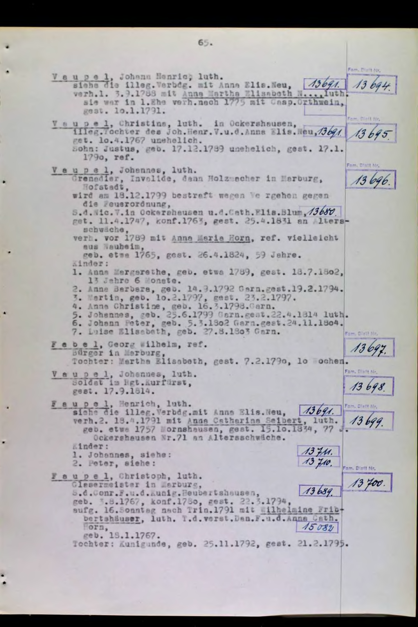 | Seit Fertigstellung des Marburger Sippenbuches 1950-1966 sind zahlreiche Ergänzungen und auch notwendige Korrekturen bekannt geworden. Zur aktuellen Seite existiert noch keine Ergänzunges- und Korrekturseite. Wenn Sie selbst Ergänzungen vornehmen möchten, wenden Sie sich bitte an Benutzer:Ernestus. |