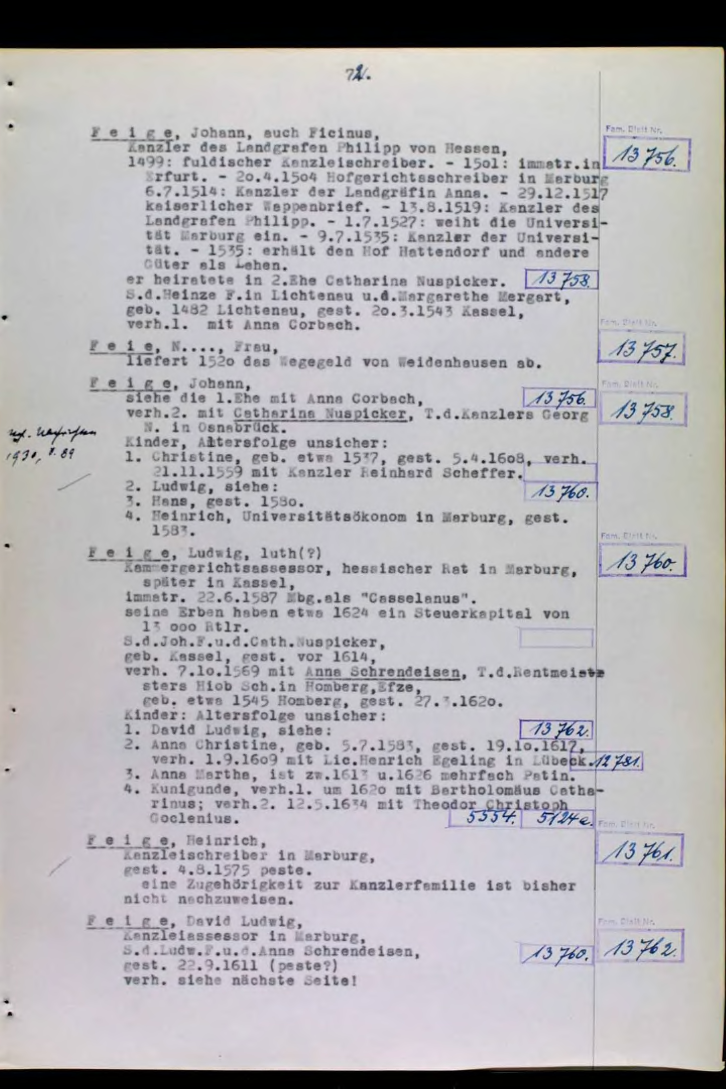 | Seit Fertigstellung des Marburger Sippenbuches 1950-1966 sind zahlreiche Ergänzungen und auch notwendige Korrekturen bekannt geworden. Zur aktuellen Seite existiert noch keine Ergänzunges- und Korrekturseite. Wenn Sie selbst Ergänzungen vornehmen möchten, wenden Sie sich bitte an Benutzer:Ernestus. |